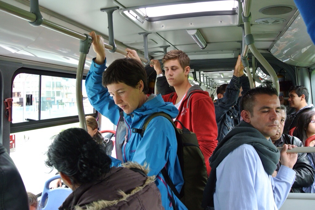 Dagens utflykt från Bogota gick till Zipaquirá där den berömda saltkyrkan ligger. Vi fick en bra karta på turistbyrån i går och vi satsade på att ta buss dit vilket var lite av ett äventyr. Först Transmilenio systemet att åka buss med bokstäver och nummer som talar om vilken riktning och hur många stationer de stannar vid etc. Byte på vissa stationer. Tog oss ett tag att förstå och har nog ännu inte förstått hur det fungerar (Colombianerna verkar också ha vissa problem men de försöker att hjälpa oss dumma svenskar vars ända spanska vi klarar baseras på Lady och Lufsen samt Ferdinand på julafton). Hur som helst kom vi till ‘Portal del norte’ där det blev andra bussar. Enligt vår guidebok skulle det ta ca 1 och en halv timme. Tur att konduktörerna visste vart vi ville och en uppmärksam halvsovande Adam. Vi var framme i Zipaquirá efter ca en halvtimme.