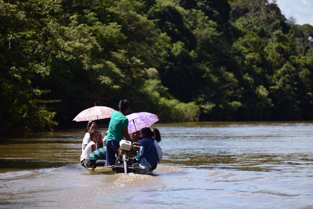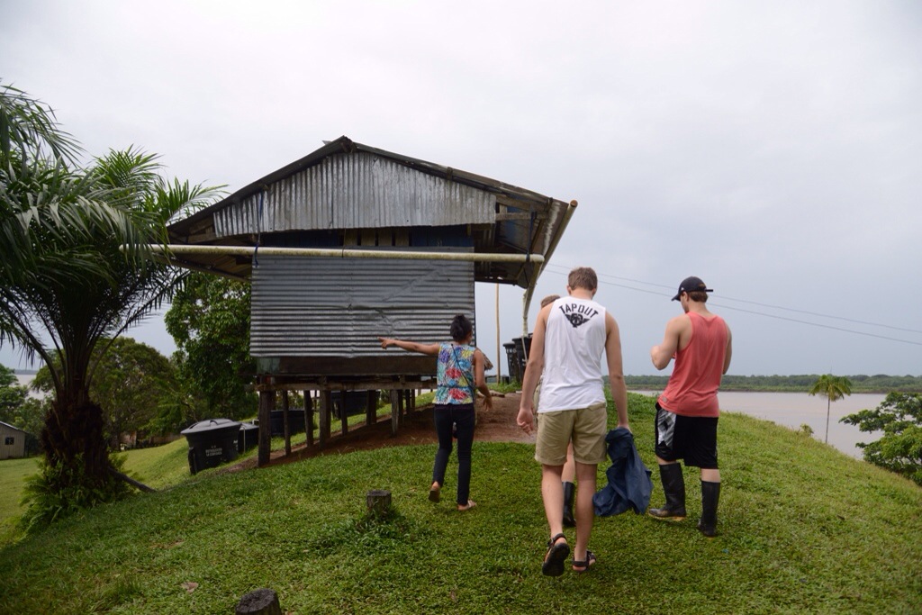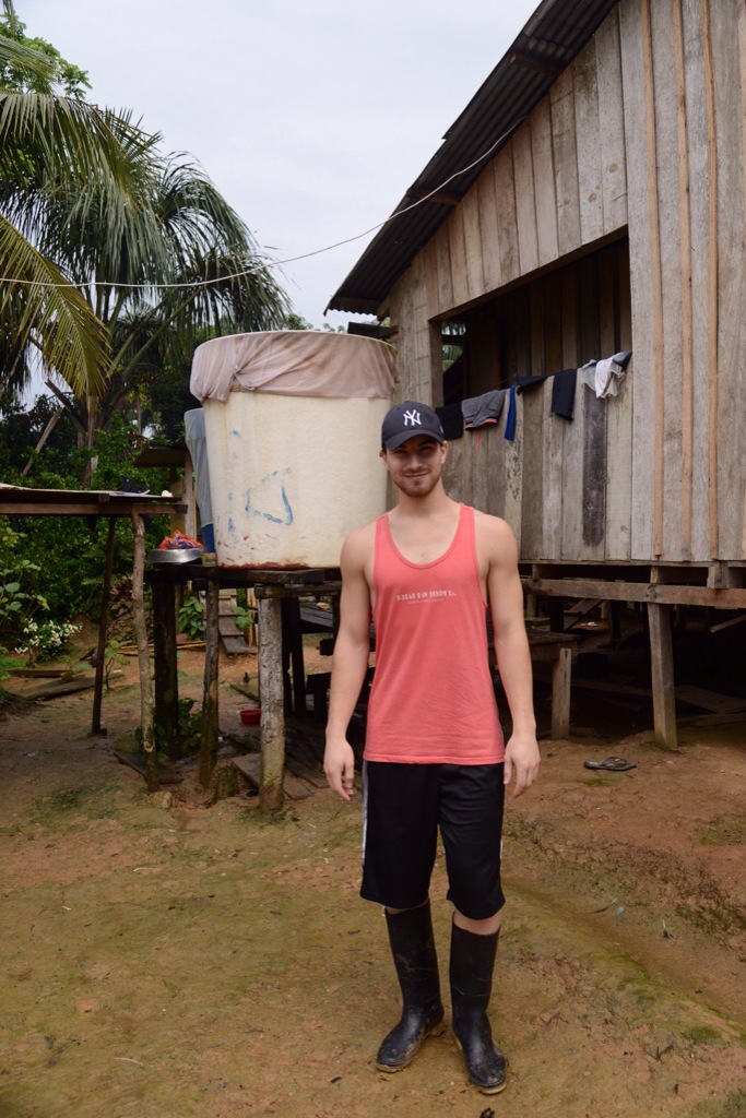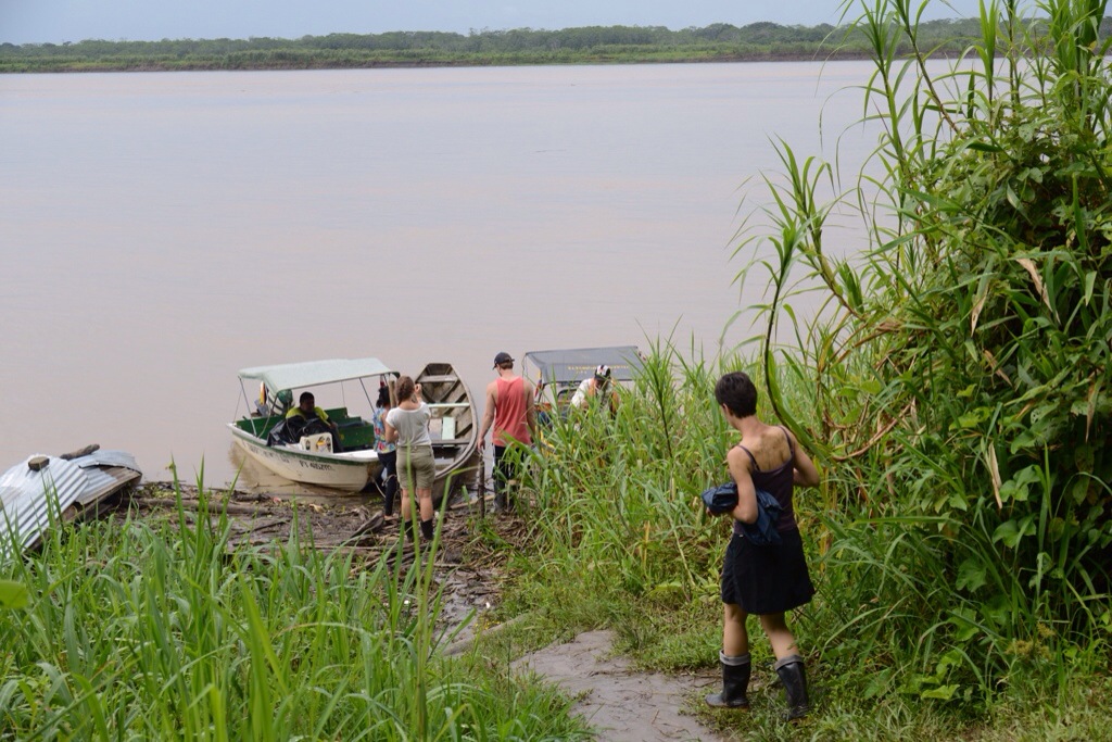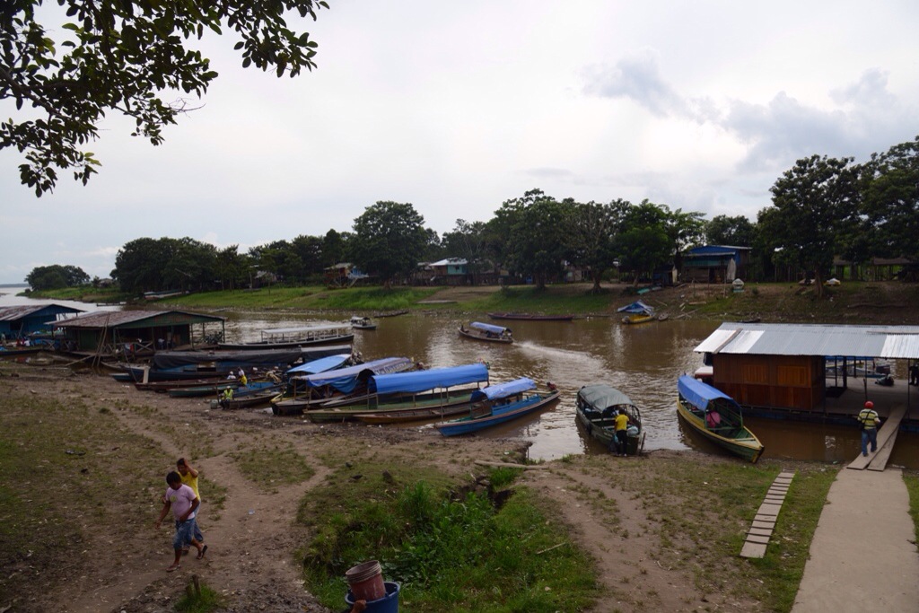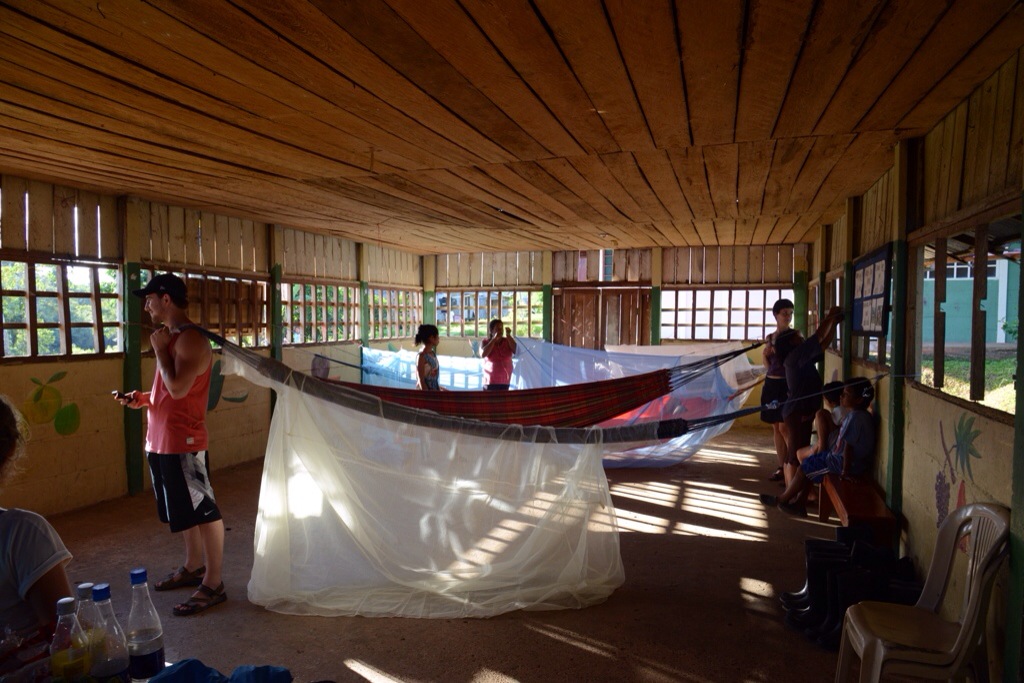 Kort sammanfattning. Fixa färskt bröd, ta oss till hamnen och den lilla taxibåten, Puerto Triunfo för vattenprojekt, Puerto Narinjo för lunch och lite rundvandring inklusive utsiktstorn och film om rosa delfiner, vidare med båten till 12 oktober (bynamn) för vattenprojekt samt tillslut Puerto Rico (vattenprojekt). Satte upp våra hängmattor i skolans matsal. Vi hade tre med oss och skulle få låna exjobbarnas två, men de var inlåsta i ett hus vars ägare hade åkt till Leticia. Det fixade sig ändå för byinvånarna fixade fram några andra åt oss, samt hjälpte oss att sätta upp dem.