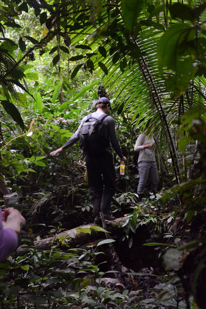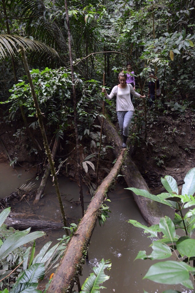 Torsdagen började med att gå upp, äta frukost och börja packa. Strax efter sju kom Pilar och tog oss till en guide. Tre timmar djungelvandring över stock sten och vatten. Fick dricka vatten ur träd, han visade oss även en del medicinalväxter mot tex orm- och spindelbett. Väldigt intressant men också jobbigt, jag var sjöblöt mesta tiden. Tur att Daniel kunde ta min kameraryggsäck större delen av tiden. Efter djungelpromenaden packade vi ihop det sista, fick i oss några kex och gick sedan till den väntade båten.