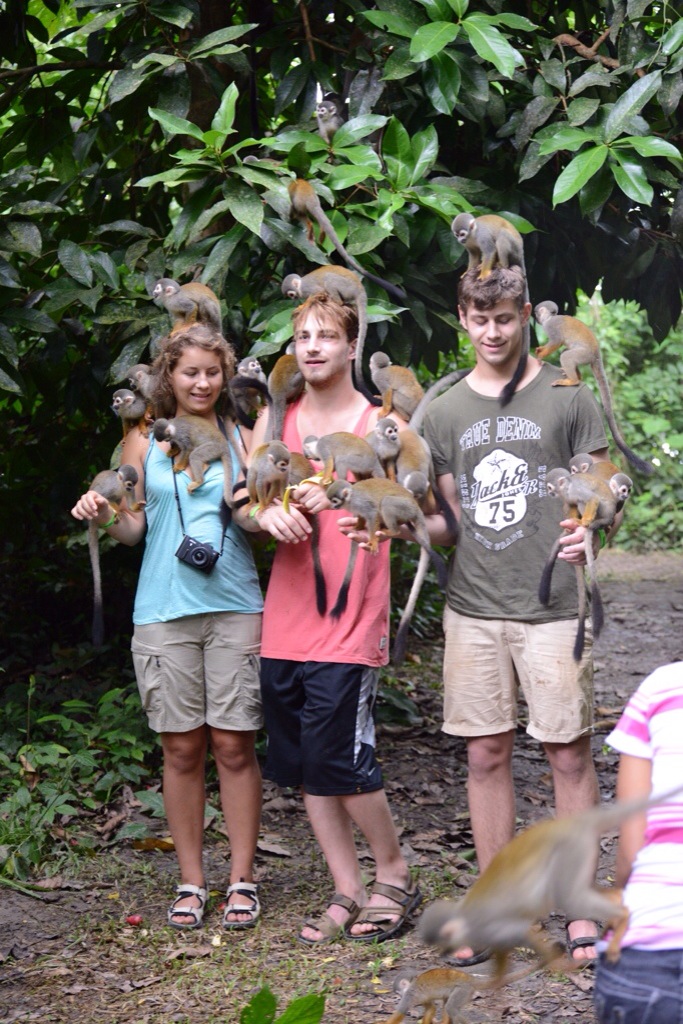 Efter lunchen gick färden vidare till den lilla apöm, där vi var själva på en visning. Man fick inte ta på den eller mata dem, men ingen talade om för oss att guiden hade väskan full med bananer som han stoppade i händerna på oss. Intressant upplevelse. Bajsade de på oss betydde det tur. Flera hade tur…