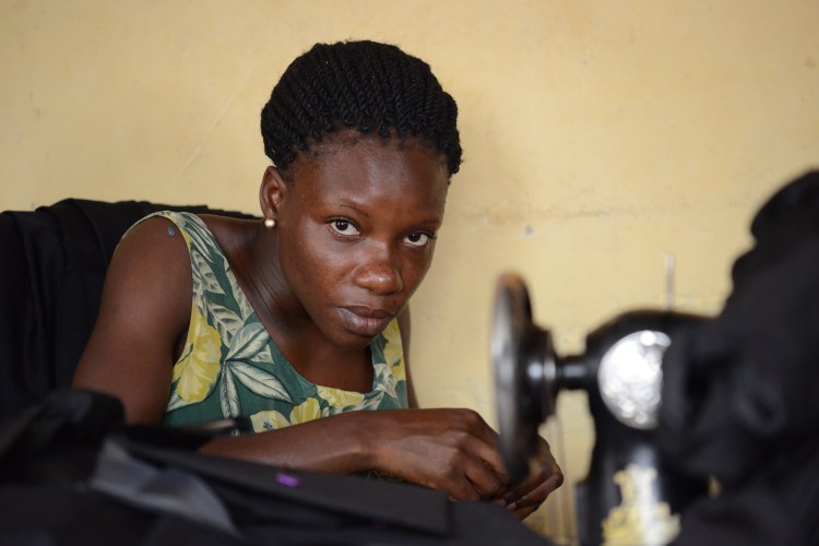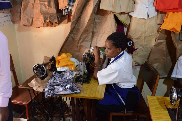 Hennes andra dotter hjälper till att sy. Alla fem flickor hjälper till i verksamheten som går bra.
