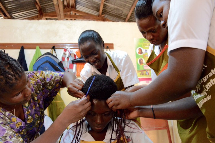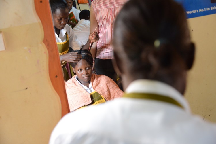 Hon som nu sluppit ifrån barnarbete och nu tränas till att bli frisör