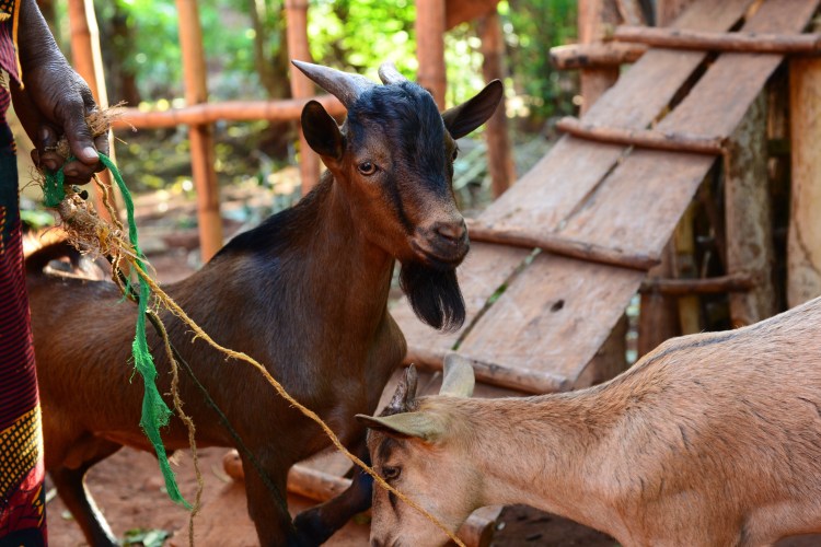 Sedan tillbaka mot hotellet/lodgen för frukost. På vägen stannade vi till vid den gamla damen som vi gav pengar till en get förra gången (den fick namnet Ronnie) för att underlätta hennes situation med tre barnbarn att ha hand om, sedan dottern dött. Det var nu 8 stycken getter som de höll på att bygga iordning ett speciellt hus för. Plåttaken var redan på plats, så det går rätt bra för henne. Ena barnbarnet var också hemma. Roligt att träffa dem igen.