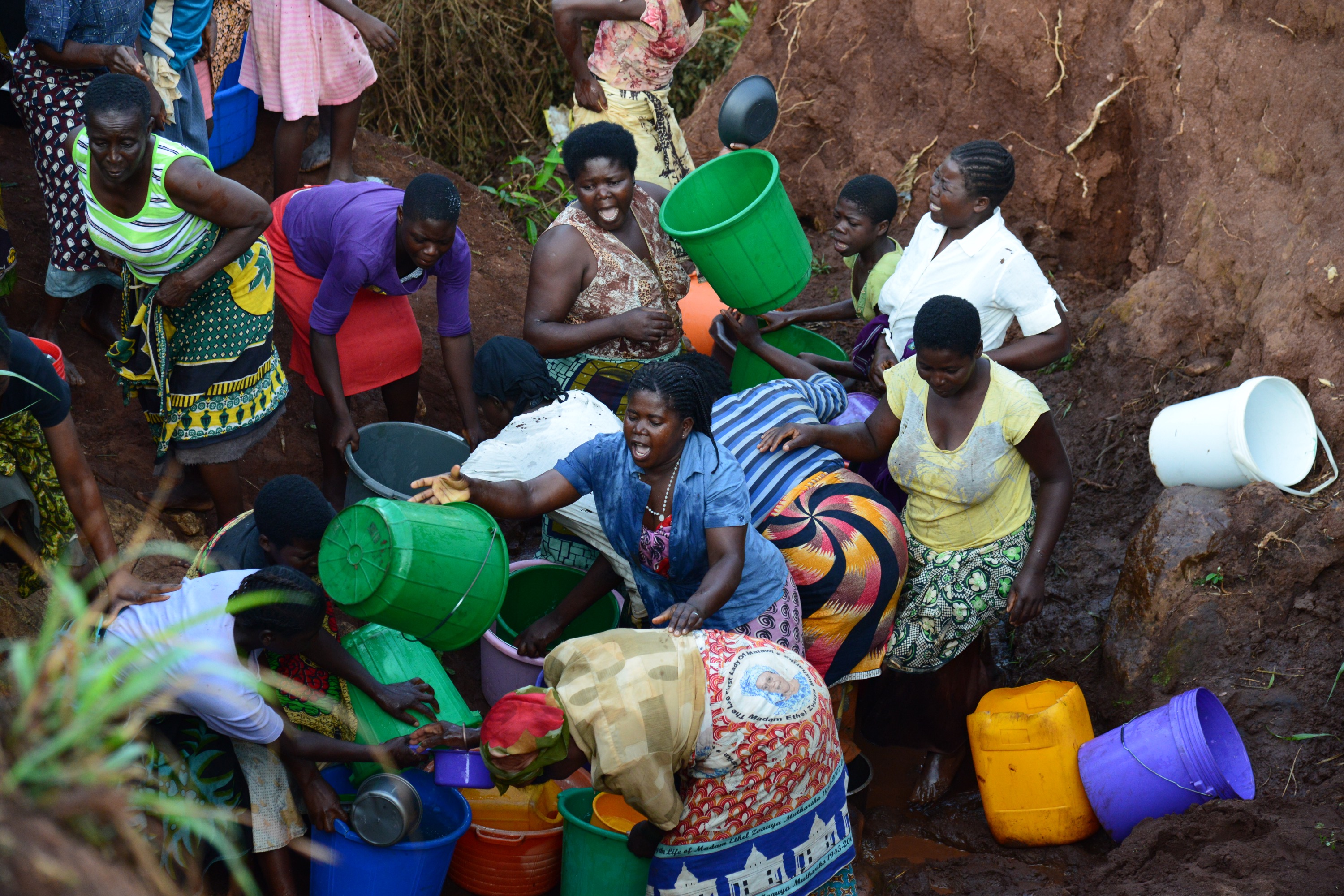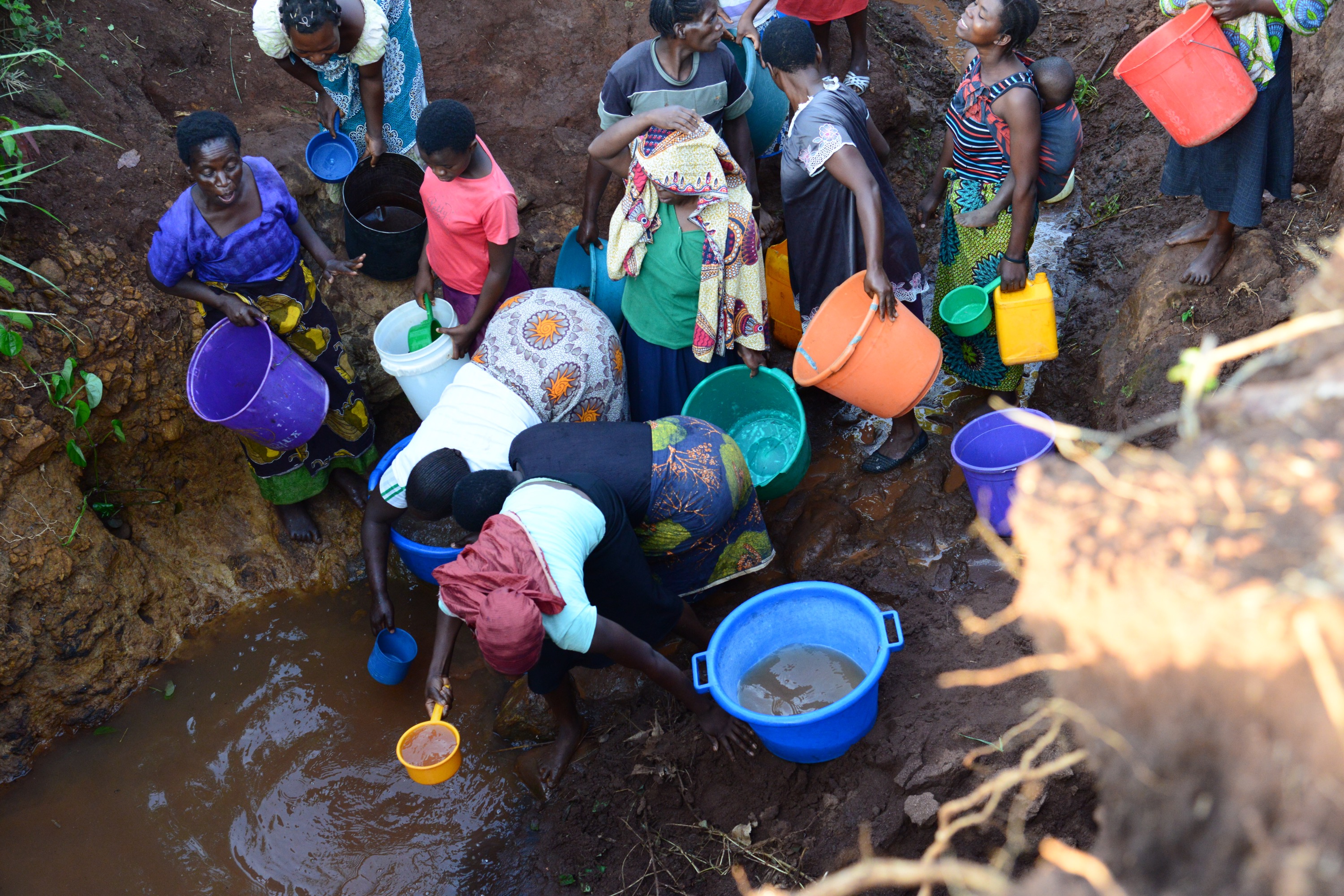 Efter att vi stannat bilen gick vi en bit för att komma till källan. Flera kom ut. Ur husen också för att gå dit. Full aktivitet. Då vi kom närmare hörde vi redan en massa käbbel och upprörda stämmor. Det gick till och med till lite handgemäng och slänga vatten på varandra. Orsaken verkade vara några som inte betalat för underhållet för att hålla det rent och gräva rent (20 Kwacha som ett engångsbelopp vilket motsvara ca 30 öre). Finns en hel del som inte har råd med detta. Enormt fattigt område. Väldigt brunt vatten. Ett tag skulle de som inte betalat få hämta sist, ett tag skulle de inte få hämta alls. Mycket skrik och upprört. Undrar vad som hade hänt om det var männen som hämtade vatten, kanske skulle inte alla komma levande därifrån. Väldig stark upplevelse och visst har vi hört berättelse, men uppleva det på plats gör att det går in på ett annat sätt.