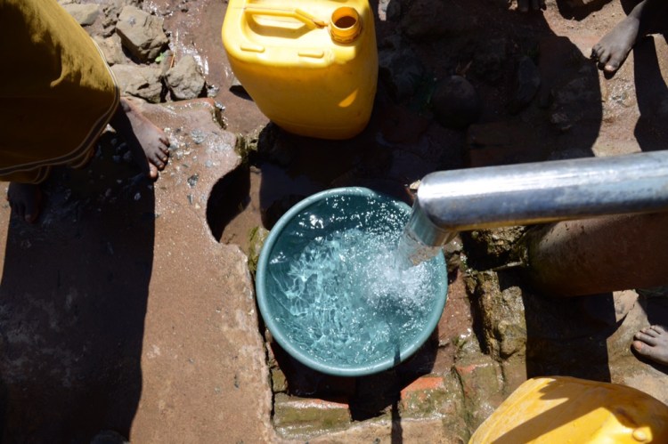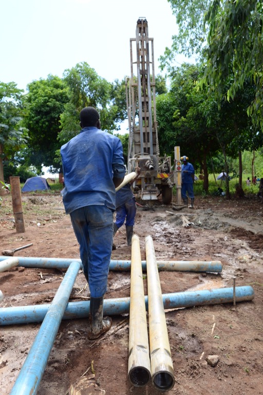 Vi åkte sedan tillbaka till borrningen i Paundi, där vi var igår och där det nu skulle spruta vatten. När vi väl kom dit hade man fått en del problem med casing-rören som skulle göras om, men man hade sparat lite till oss och borrade så att vattnet sprutade upp ur hålet. Faktiskt väldigt glad att de ställde upp på det. Inte så ofta vi får bilder på det.