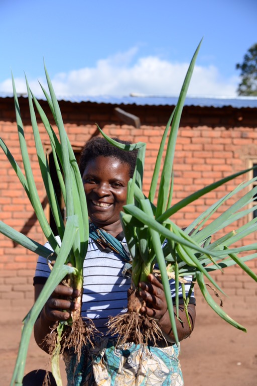 Efter lunch åkte vi till Sakhama där Vatten åt alla borrade under 2015 och där man nu startat upp olika verksamheter. Bland annat hade man anlagt en del köksträdgårdar och vi tittade på en där man nu odlade lök som man sålde på torget. Både små och stora. De stora på bilden nedan kostade 200 Kwacha (ca 3kr) och gav en hel del inkomst. Dock har inte alla råd, men därför sålde man även de minsta så att de flesta skulle kunna köpa.