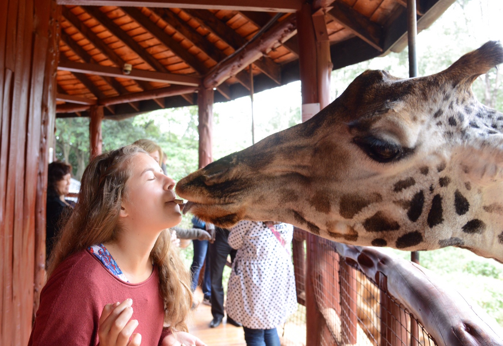 15/8. Carlos kom och hämtade oss vid 8. Carlos körde mig förra gången jag var här också så det var roligt att få träffas igen. Han kommer vara vår chaufför ända tills vi åker hem igen. Väldigt bra. Vi började dagen på giraff-centret där de tar hand om föräldralösa giraffer, för att sedan åka till David Sheldiks center där de föder upp föräldralösa elefanter. Väldigt intressant och samtidigt lärorikt.Bland annat att giraffernas saliv är antibakteriellt så att det tillåter pussar för de riktigt modiga. Åt lunch på Mamba center, en krokodilfarm men gick aldrig in. Dels beroende på att maten tog lång tid samt att krokodilfarmen tappat i skötseln och kvalitén enligt många. Åkte istället till Karen Blixen museet och fick en guidning i och runt huset. Får ta och titta på filmen (Out of Africa) när vi kommer hem. Hann inte med det innan. Till shoppingcentret för att handla lite kvällsmat och sedan tillbaka till vår lilla stuga på hotel Troy. I morgon bör det iväg till Masai Mara. Blir nog dåligt med internetförbindelsen under resten av veckan. Både Masai Mara och Kisumu/Awasi/Komollo ska hinnas med innan vi återvänder till Nairobi.