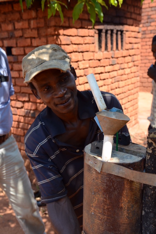 Hela dagen i övrigt spenderades i Chilingulo, först hos bychefen och hennes mamma (som var bychef tidigare), på platsen där den enda pumpen finns för närvarande. Hon förde igenom att alla i byn skulle ha latriner och handtvättanläggningar. Tufft besked vilket fick många att sätta fart på saker och ting, vilket de nu är glada över. Tittade även lite snabbt på deras trädodlimgar och biodlingar. De hade även byggt ett tak för att kunna torka tobak. Mycket på gång. Fortsatte sedan till Muzanza som hoppade av secondary school, men är något av en uppfinnarjocke. Uppskattade besöket mycket där vi fick prata med honom och att han visade runt oss och visade på hans olika idéer på handtvättsanläggningar som i denna fattiga värld saknar motstycke. Bygger hela tiden vidare med förbättringar och nya idéer. Stod inte gärna i rampljuset, verkade hellre vilja arbeta.