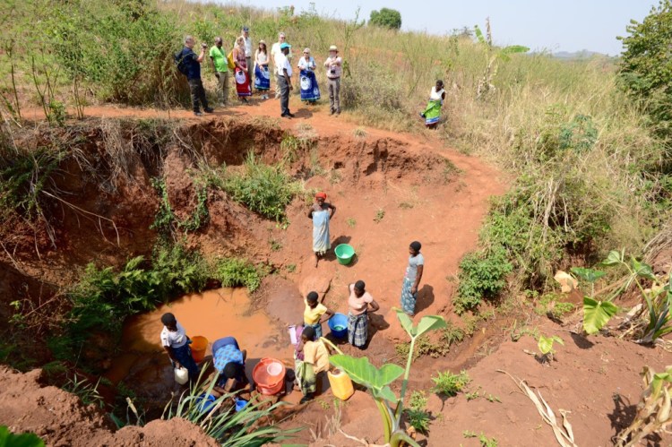 Vi började med att gå igenom, förutom själva projektet, strukturer, politiska läget och hur det traditonella ledarskapet ser ut, samt att gå igenom de olika aktörerna och intressenterna i och kring projektet. Därefter åkte vi direkt ut till Kadewere och tittade på när kvinnorna hämtar vatten från en oskyddad källa. Det satt långt inne för alla att förstå att det här var det här vattnet som de drack. De tog vatten från den allra yttersta ytan. Förvånansvärt rent med tanke på hur brunt vattnet är någon decimeter längre ned under ytan. Några flickor var också där. Det såg väldigt tungt ut att lasta upp dunken på huvudet. Vi gick sedan även förbi Joyces hus och tittade på de tre getterna som hade kommit. Blir bra för familjen att ha kunnat få tillgång till dessa. Gick sedan vidare till planerat borrställe och Poker (Peter Wallenberg Jr) fick kick-starta borrningen. Första gången han borrade men gamla kompressorn från 1992 fungerade fortfarande. Innan lunchen stannade vi även till vid en övergiven pump på marknadsplatsen i Kadewere och fick förklaringen till varför den var övergiven – den var borrad för att vinna röster i samband med ett val, men ingen kände något ansvar för den eller dess underhåll när den väl skulle underhållas eller lagas.