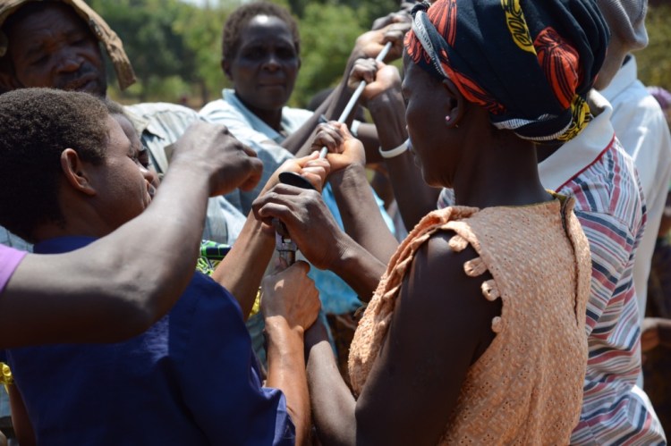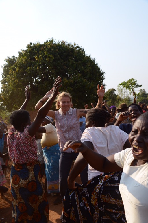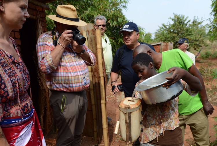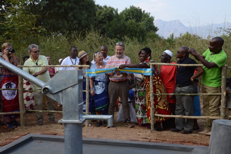 Eftermiddagen spenderade vi i Chilingulo, först hos ”uppfinnarjocken” Mazunzo med hans handtvättanläggningar, sedan dans, tal och teater samt invigning av den första borrade brunnen i projektet. Poker klippte bandet, men både Andrea och Alice stod vid hans sida tillsammans med bychefen. Riktigt roligt. De fick också prova på att pumpa fram vattnet. Avslutade eftermiddagen med att titta på Rose och de övriga kvinnornas tillverkning av energispisar.