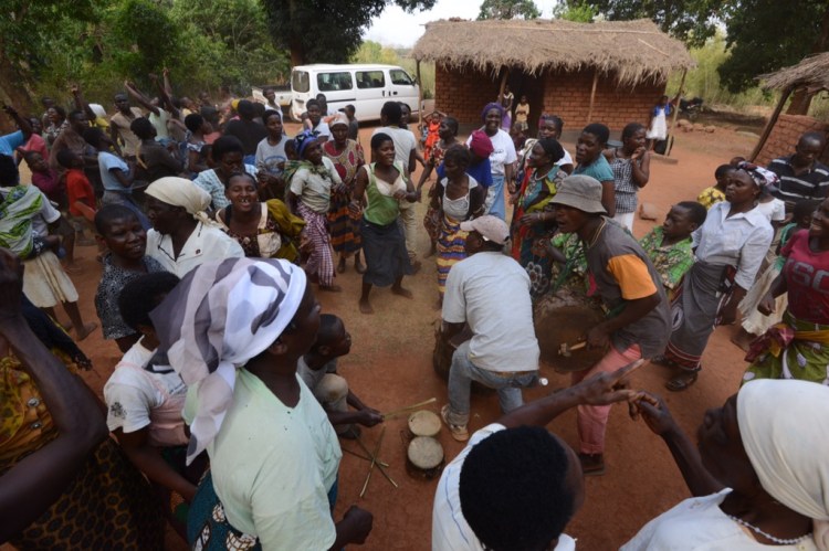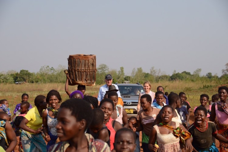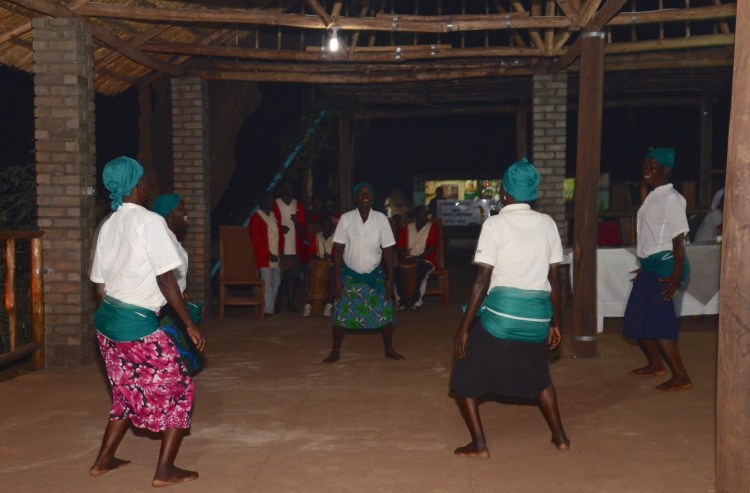 På eftermiddagen åkte vi mot Njoloma men gjorde ett kort stopp vid ADRAs första brunn (2007) samt i byn där vi tittade på deras uppfödning av kycklingar och äggproduktion. Detta för att få ihop pengar till franförallt flickors skolgång i secondary school. I Njoloma blev vi kungligt mottagna och vi hoppade ur bilarna och gick och dansade med dem ända ned till den brunn som Hans fick av Atlas Copcos styrelse 2012. Fortsatte sedan upp till gemenskapscentret där tal, sånger, drama med mera avlöste varandra. Även T/A Chikumbu, den traditonella ledaren var på plats och manade flickor till att inte sluta skolan och att inte få barn så tidigt. Starka ord från en betydelsefull ledare.