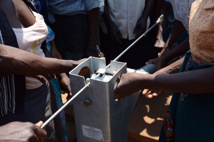 Därefter gick vi upp till en nyligen rehabiliterad brunn och tittade på när de nyutbildade pumpmekanikerna plockade upp hela pumpen, gick igenom alla delar och gjorde rent/bytte det som var slitet innan de satte ihop den igen.