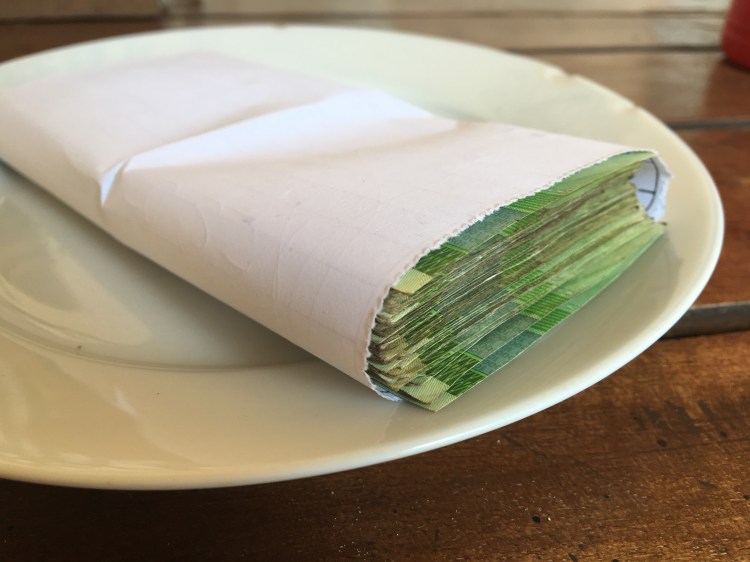 Pengar för pizza och dryck för 8 personer. Högsta sedeln i Malawi är 1000 Kwacha, ca 12kr. Pizzan här är lika dyr i kr som hemma!