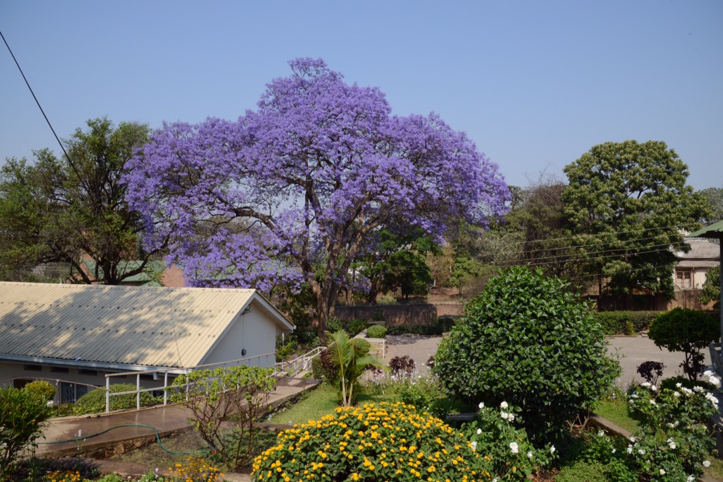 Lämnade Mulanje redan på morgonen den 14:e tillsammans med Hans och åkte till Blantyre, där vi träffade Michael Usi på ADRAs kontor samt kollade upp det sista inför vårt celebra besök. Där fanns även en fantastisk jakaranda-träd med dess blåa blommor. Åkte till flygplatsen så att vi var där i lagom tid. 4 gäster. 2 flyg. Familjen Wallenberg på besök. Peter (Poker) med fru Klara samt Andrea och Alice. Enormt roligt och inspirerande att få ha dem här på plats i projektet som är till minne av deras pappa, svärfar och farfar.
