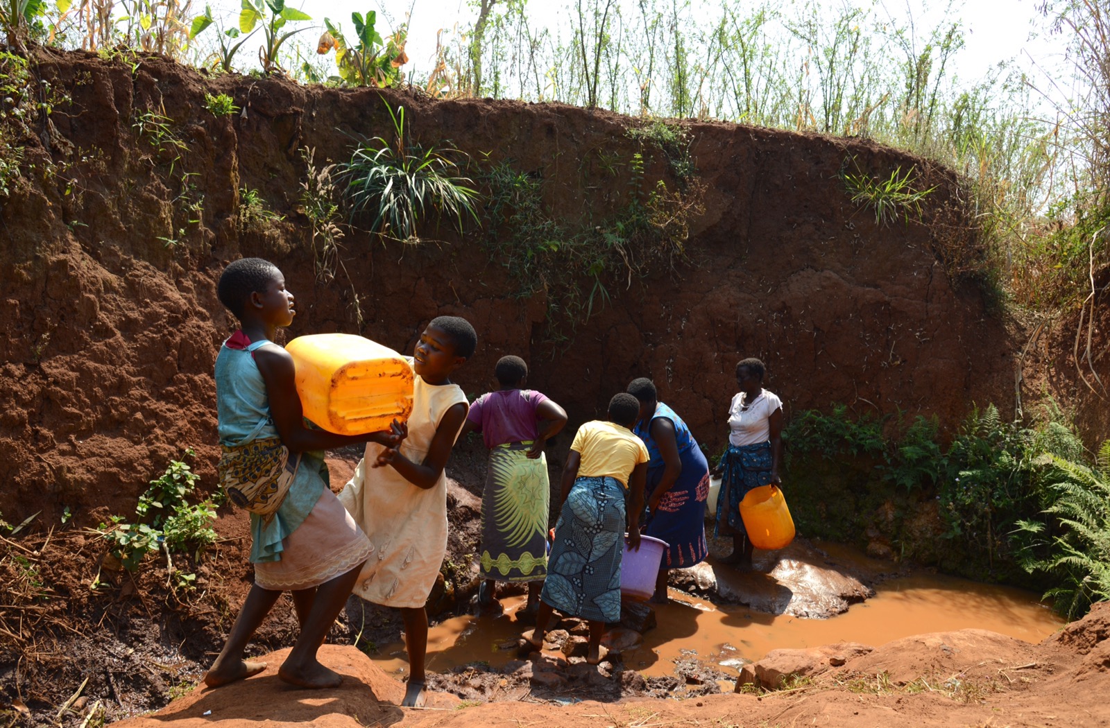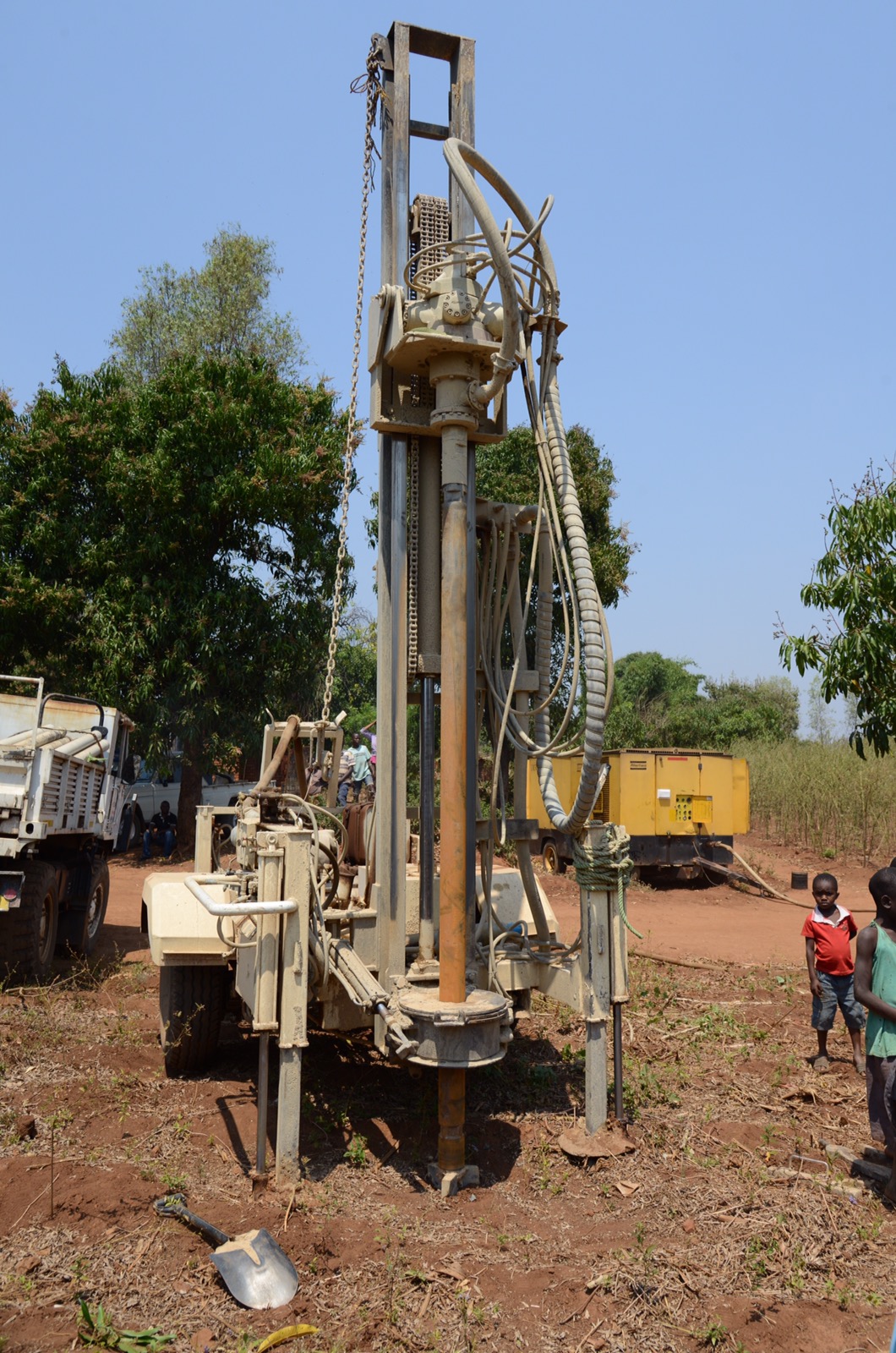 Vi började med att gå igenom, förutom själva projektet, strukturer, politiska läget och hur det traditonella ledarskapet ser ut, samt att gå igenom de olika aktörerna och intressenterna i och kring projektet. Därefter åkte vi direkt ut till Kadewere och tittade på när kvinnorna hämtar vatten från en oskyddad källa. Det satt långt inne för alla att förstå att det här var det här vattnet som de drack. De tog vatten från den allra yttersta ytan. Förvånansvärt rent med tanke på hur brunt vattnet är någon decimeter längre ned under ytan. Några flickor var också där. Det såg väldigt tungt ut att lasta upp dunken på huvudet. Vi gick sedan även förbi Joyces hus och tittade på de tre getterna som hade kommit. Blir bra för familjen att ha kunnat få tillgång till dessa. Gick sedan vidare till planerat borrställe och Poker (Peter Wallenberg Jr) fick kick-starta borrningen. Första gången han borrade men gamla kompressorn från 1992 fungerade fortfarande. Innan lunchen stannade vi även till vid en övergiven pump på marknadsplatsen i Kadewere och fick förklaringen till varför den var övergiven – den var borrad för att vinna röster i samband med ett val, men ingen kände något ansvar för den eller dess underhåll när den väl skulle underhållas eller lagas.