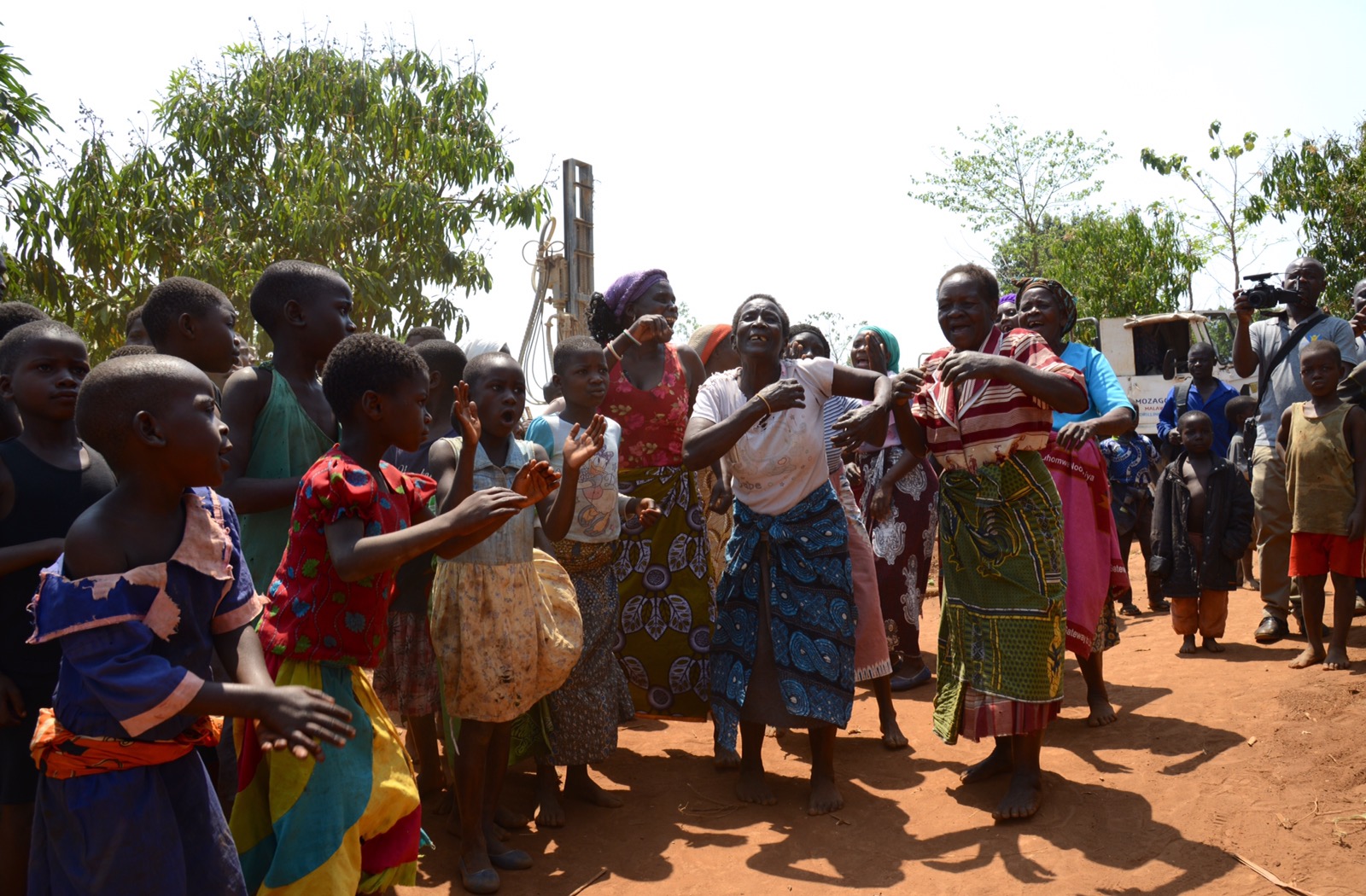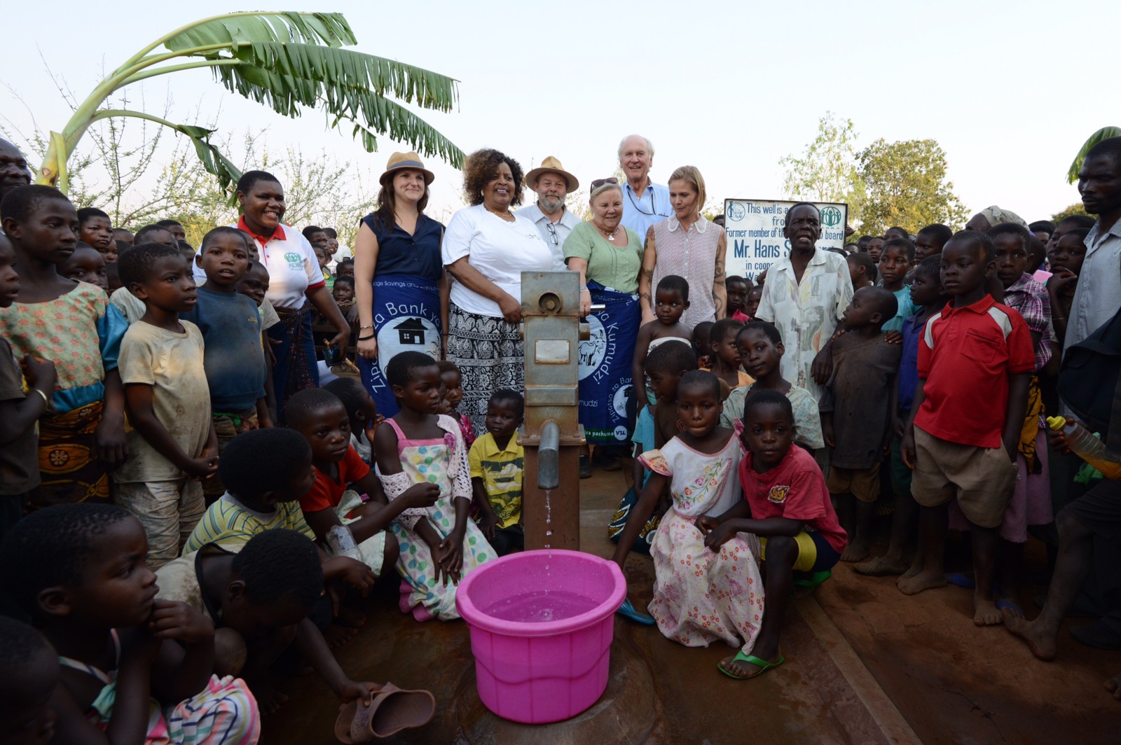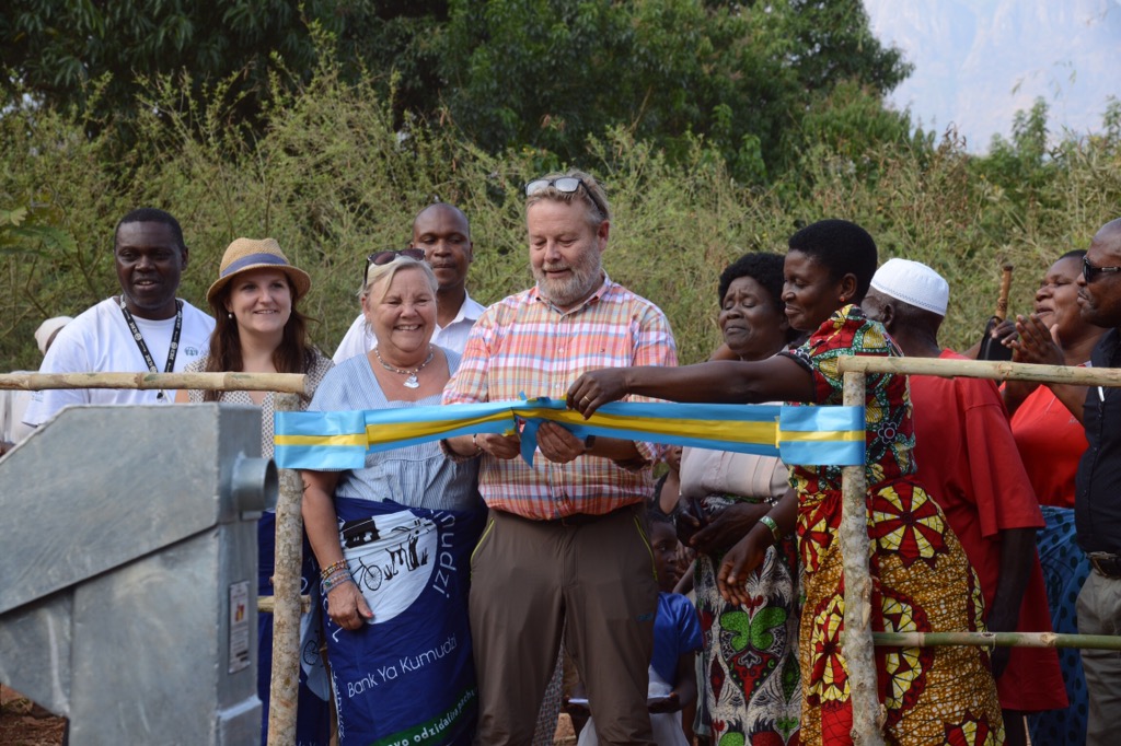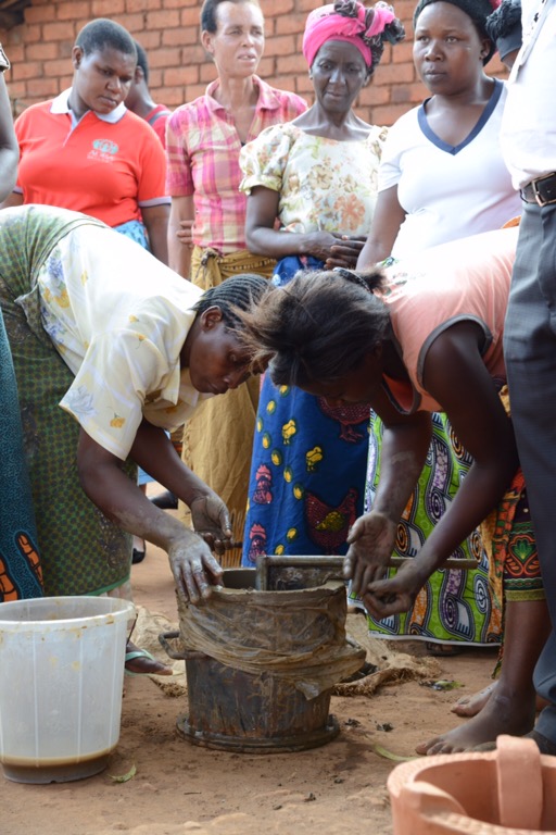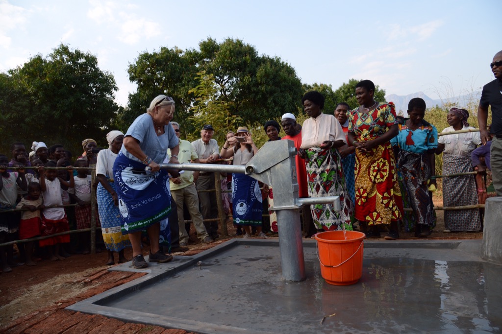 Eftermiddagen spenderade vi i Chilingulo, först hos ”uppfinnarjocken” Mazunzo med hans handtvättanläggningar, sedan dans, tal och teater samt invigning av den första borrade brunnen i projektet. Poker klippte bandet, men både Andrea och Alice stod vid hans sida tillsammans med bychefen. Riktigt roligt. De fick också prova på att pumpa fram vattnet. Avslutade eftermiddagen med att titta på Rose och de övriga kvinnornas tillverkning av energispisar.