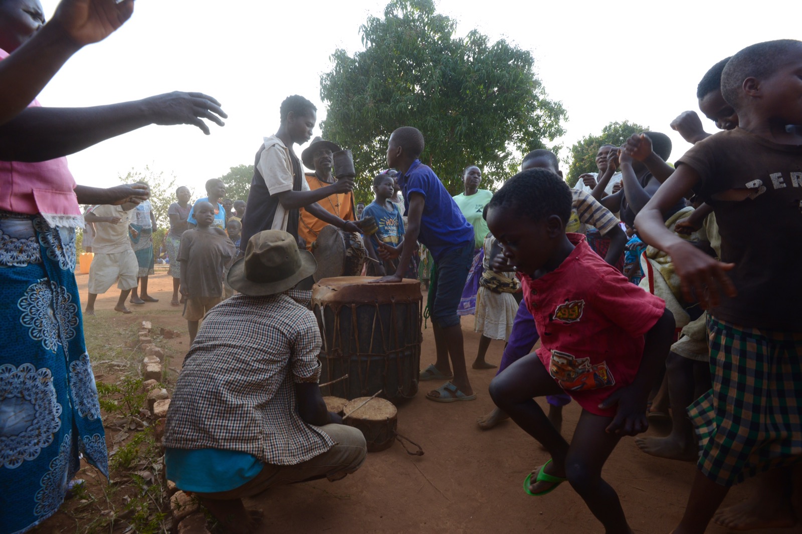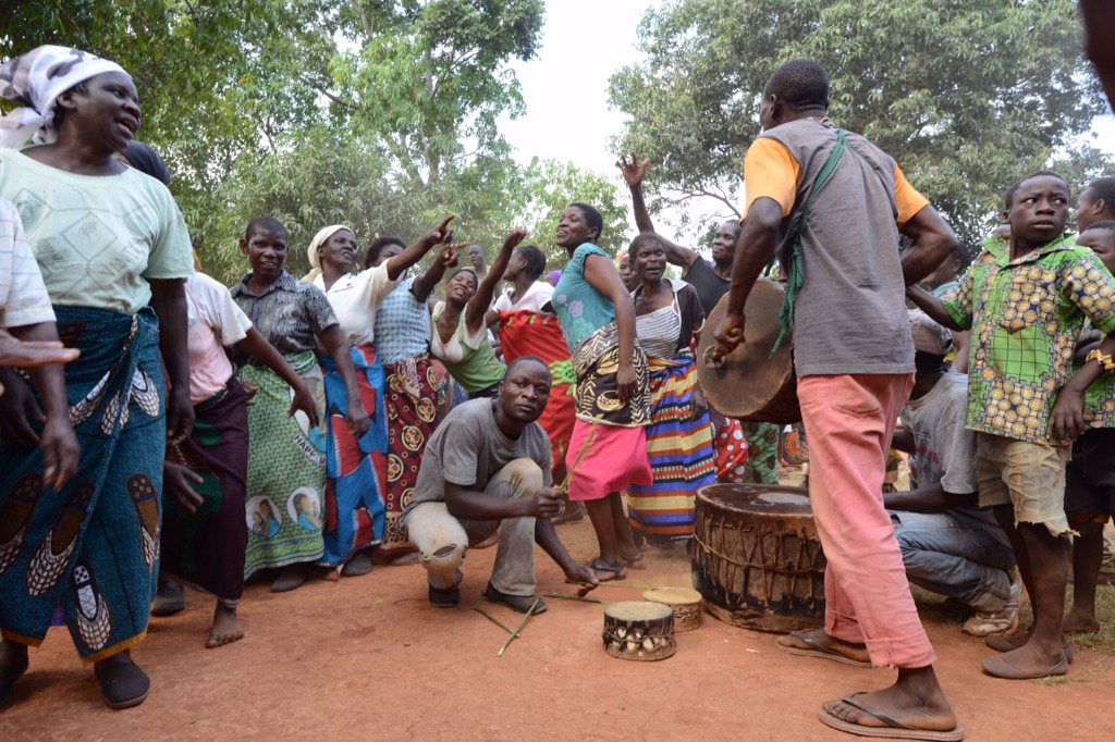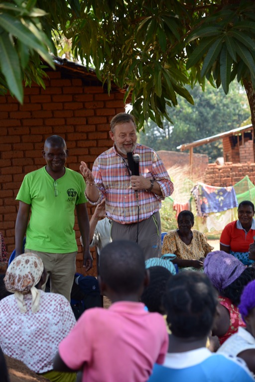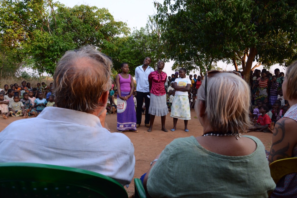 På eftermiddagen åkte vi mot Njoloma men gjorde ett kort stopp vid ADRAs första brunn (2007) samt i byn där vi tittade på deras uppfödning av kycklingar och äggproduktion. Detta för att få ihop pengar till franförallt flickors skolgång i secondary school. I Njoloma blev vi kungligt mottagna och vi hoppade ur bilarna och gick och dansade med dem ända ned till den brunn som Hans fick av Atlas Copcos styrelse 2012. Fortsatte sedan upp till gemenskapscentret där tal, sånger, drama med mera avlöste varandra. Även T/A Chikumbu, den traditonella ledaren var på plats och manade flickor till att inte sluta skolan och att inte få barn så tidigt. Starka ord från en betydelsefull ledare.