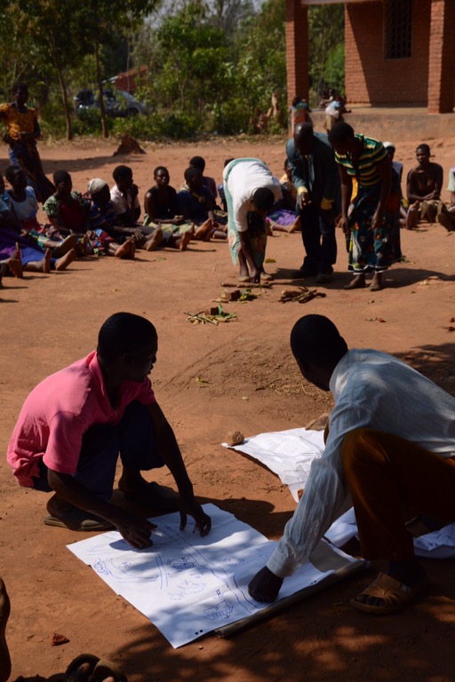 Åkte direkt ut på fältet redan kl 8 på morgonen. Idag var tanken att se mer på hur utvecklingen sker i byarna, vilka frågor förutom vatten och sanitet som de har och hur de tacklar dem via REFLECT-metoden. Åkte till Chinomba och sub-Village Chizu för att vara med på ett möte. Tittade även på handpumpen och på skolan som invigdes 2014. Eleverna (som var väldigt många) sitter fortfarande på golvet då man inte har haft råd att skaffa bänkar och väldigt dåligt med skrivmaterial. Dagens reflektmöte handlade om 1) att titta tillbaka på vad som föröndrats de senaste två åren via att jämföra en ritad karta då och nu samt 2) att man nu skulle försöka få stöd och hjälp att bygga ut skolan med flera klasser, så att det inte skulle bli så långt för dem som kommit upp till Std 3 eller högre. Man höll på att tillverka tegel och skulle nu söka hjälp med arbetet från ansvarig lokal myndighet som även hade hjälp dem med första skolan.