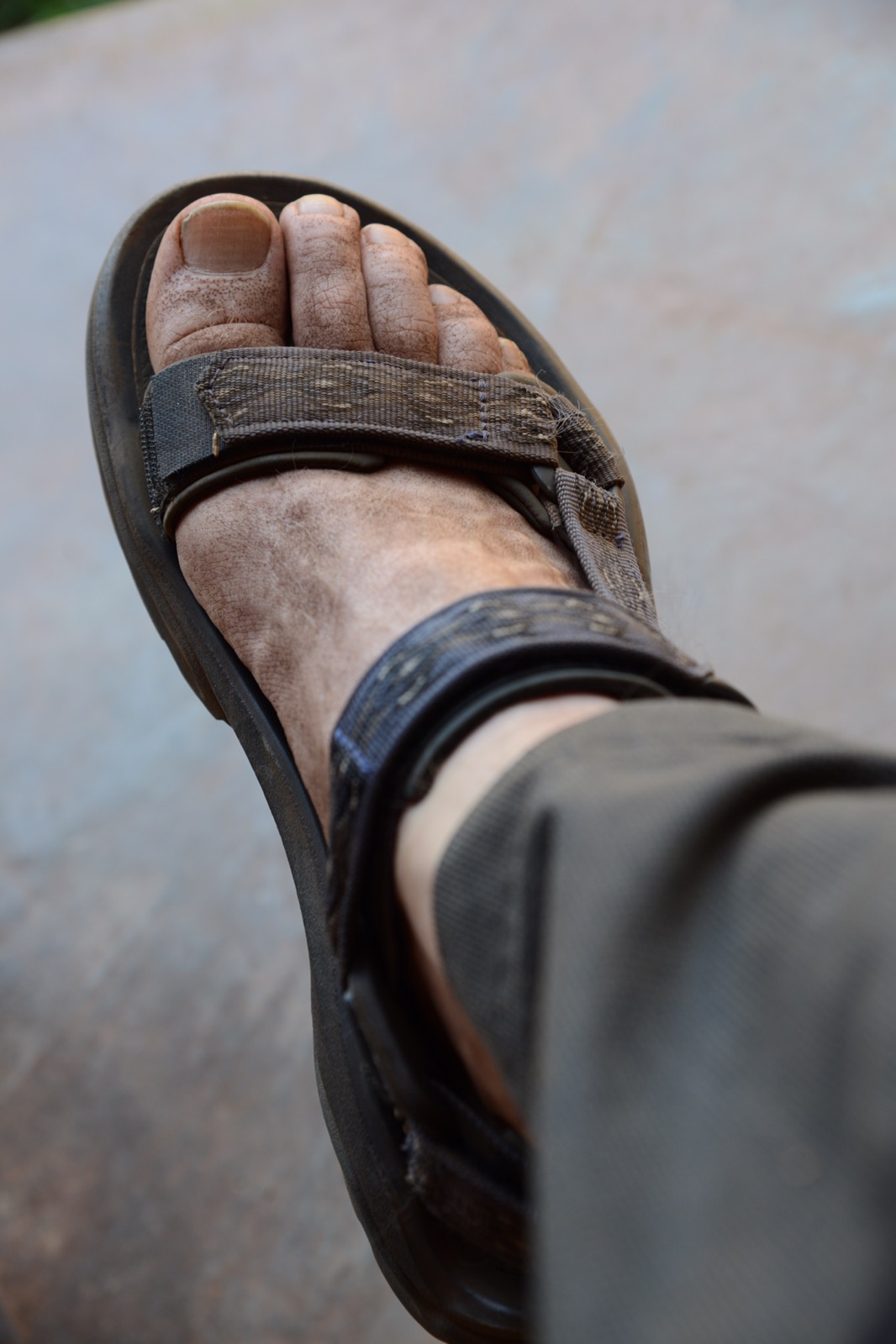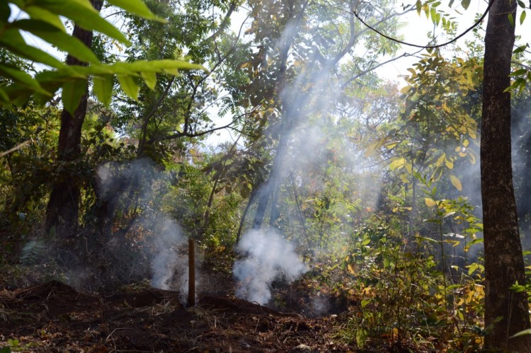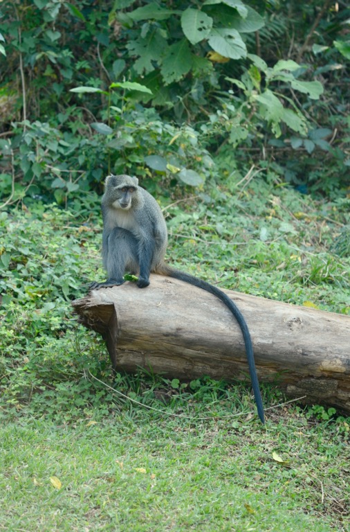 Aporna som varit lite frånvarande de sista dagarna var tillbaka igen. Flera stycket sprang över taket till mitt rum och jag tog en runda med kameran och hittade dem nära huslängan där mitt rum är. Tog efter frukost en promenad i skogen och en stund sittande vid en bäck/jokk som nu bara var en liten rännil. Bosse och jag lämnade Hans och gick vidare en bit. Såg både kolmileldning och en familj som bar ned ned ved till hemmet. Tillbaka på lodgen konstaterade jag, precis som förra helgen, att fötterna blir väldigt skitiga när man går i sandaler. Förstår nu mycket tydligare varför det var kutym att tvätta fötterna på gästerna långt tillbaka i tiden.