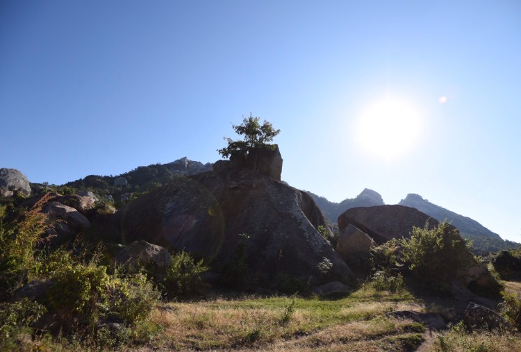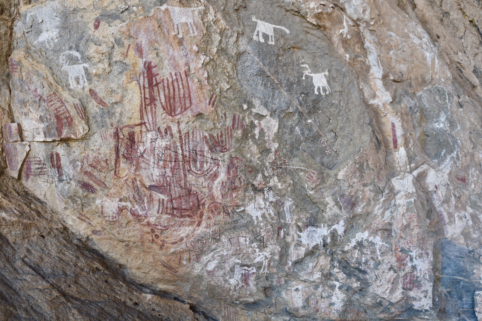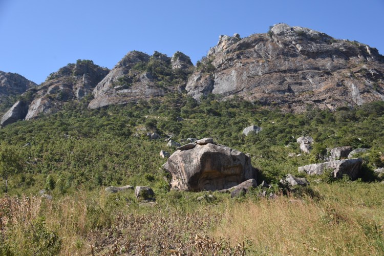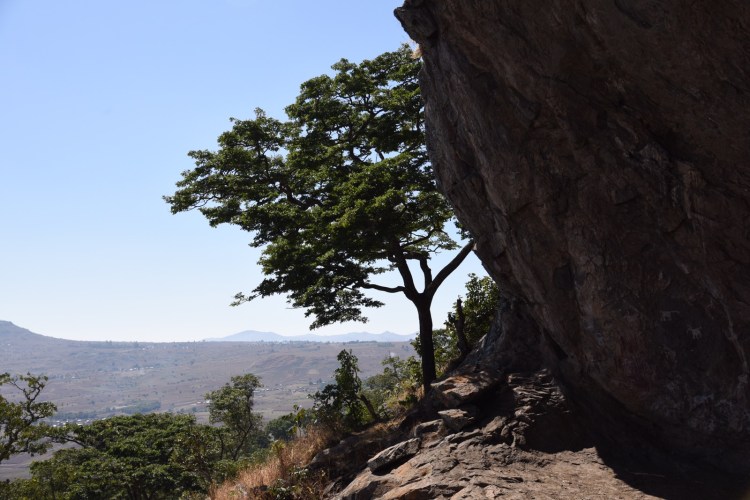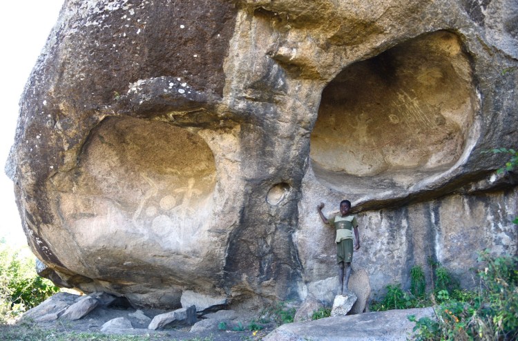 Åkte sedan över till andra sidan, till Mphunzi och passerade den kyrka som byggts 1912 och fortfarande var i bruk. Åkte till den sten där David Livingstone slog upp läger och besökte både de målningar som fanns där och en annan alldeles i närheten. Tog oss sedan en bit tillbaka, parkerade bilen och gick upp mot den jag sett och helst skulle vilja se. Vi skippade lunchen utan ville bli klara med alla besök innan vi intog den. En halvtimmes vandring och bitvis kraftigt uppåt. Vår chaufför höll på att ge upp på slutet, men kom till slut upp i alla fall. Det var ungefär som jag föreställt mig den. Oerhört vackert och häftigt område. Här var det många olika djur som var avbildade och guiden visade oss de flesta. Svårt att se utan guidens hjälp.