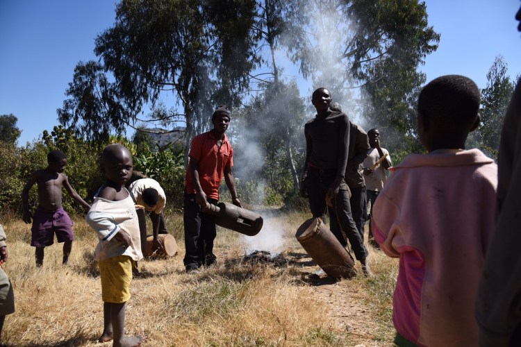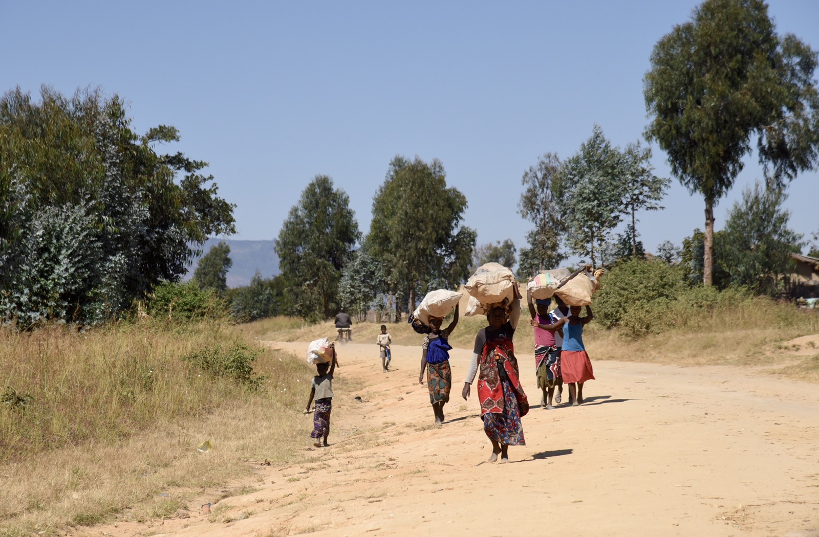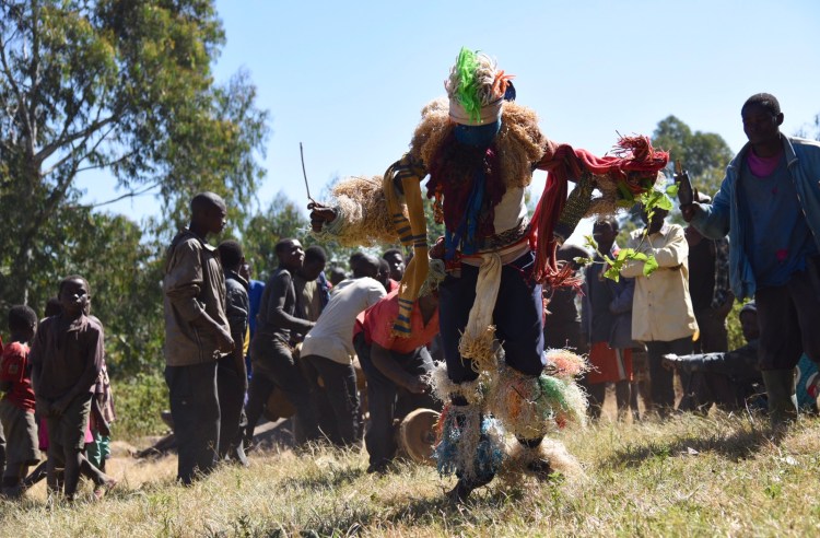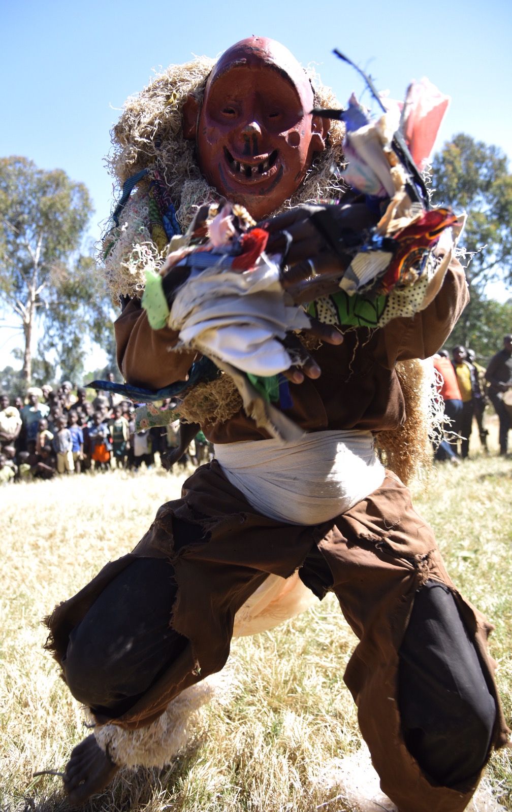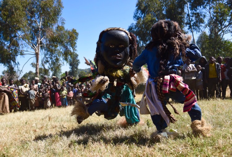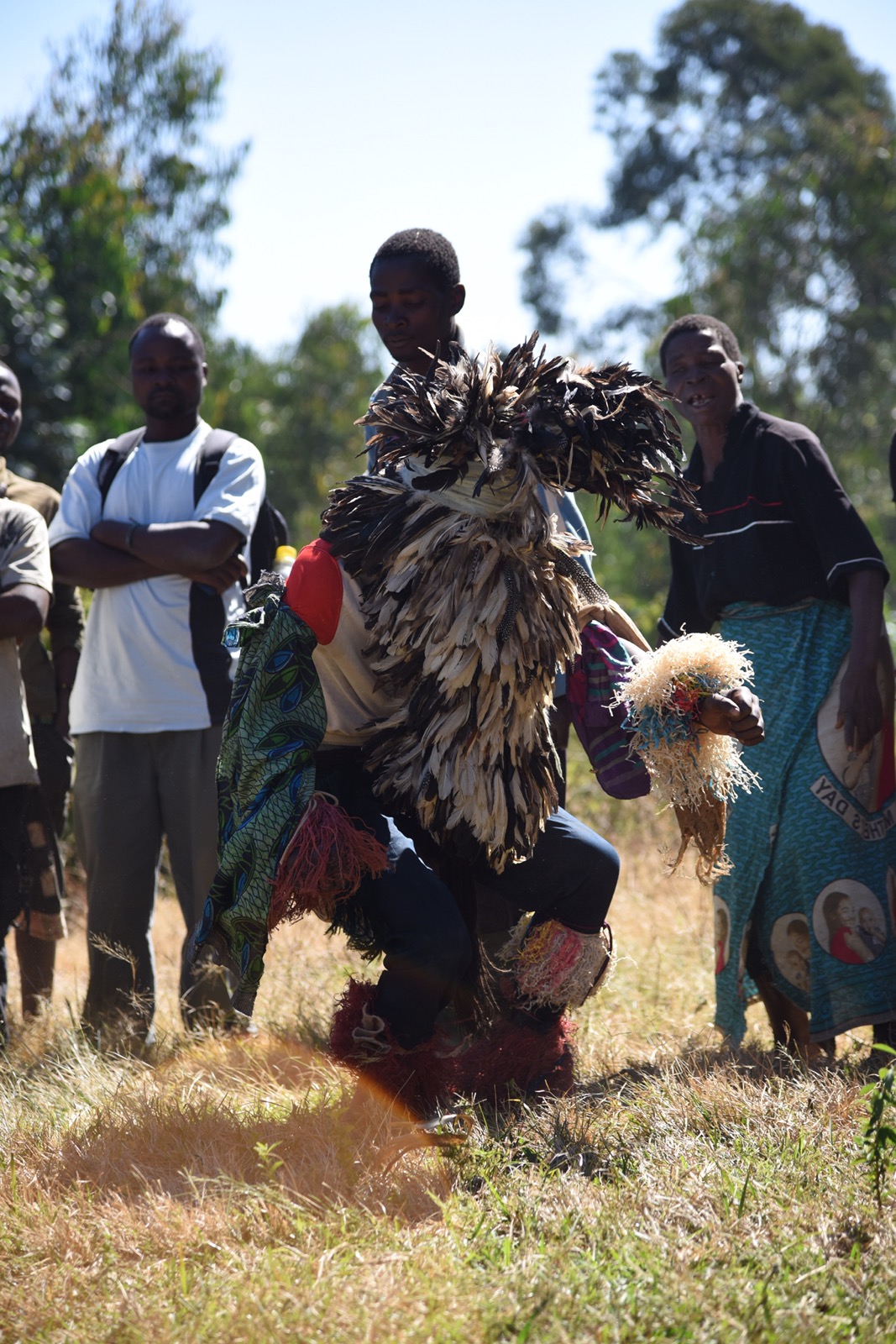 Namzeze vart en 25 minuters promenad efter att vi ställt bilen. Fantastiskt vackert och häftigt att få se dessa målningar, även om en del hade klottrats. Åkte sedan tillbaka samma väg, passerade en hel del kvinnor som bar ved, och kom sedan till byn för danserna. Det var också väldigt häftigt att få se. Efter föreställningen fick jag tacka, framförallt kvinnorna som är de viktigaste personerna här i byn även om chefen var en man. Deras chewa-ursprung innebär också att det är ett matriarkat samhälle, dvs att arvet går på moderns sida till döttrarna.