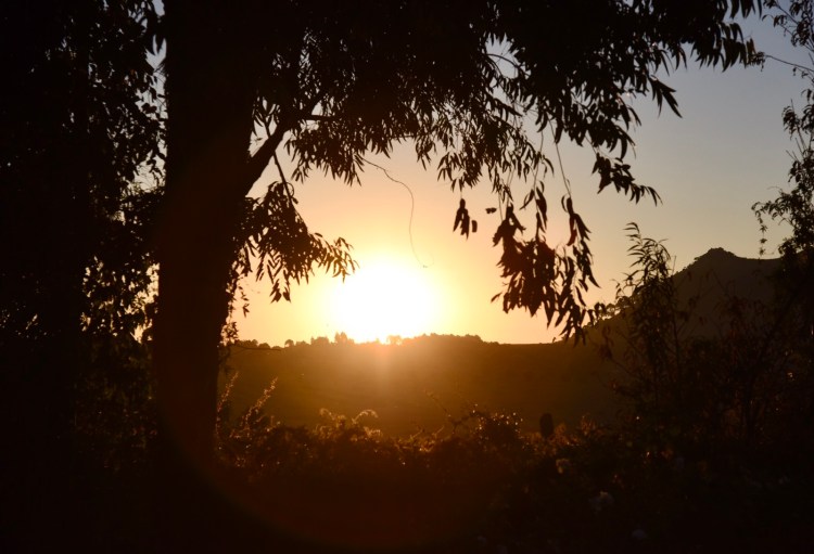 Besökte ytterligare några platser i närheten, bl.a. två målningar med giraffer, varav en drack från ett vattenfall. Åkte sedan tillbaka till lodgen, intog lunchpaketet och fick en vacker kväll igen. Snart dags för ännu en middag men tyvärr ingen Kuche-Kuche, det lokala ölet som är så svårt att få tag på på många platser. Den hade tagit slut. Vacker måne och stjärnhimmel i kväll i alla fall.