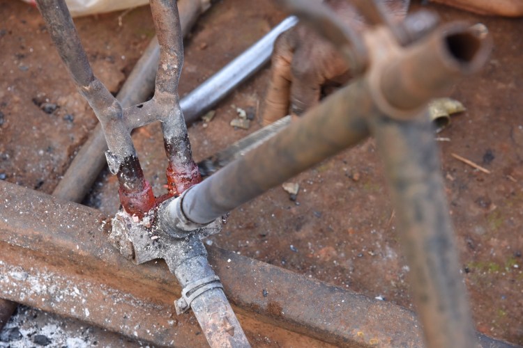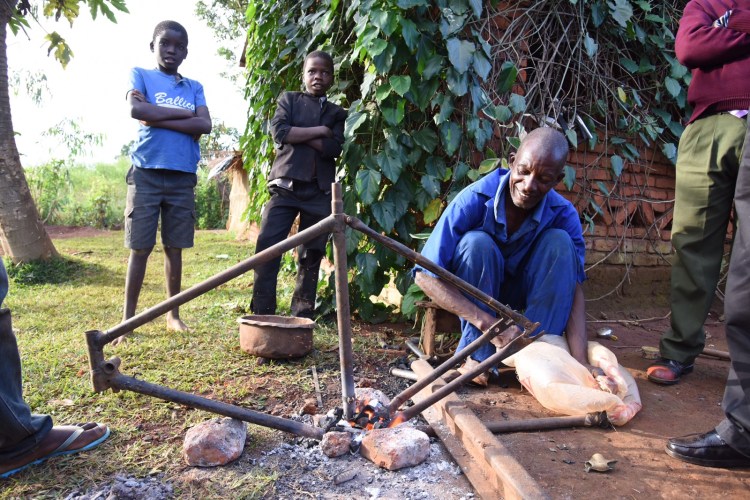 Åkte till sist även ned till Joyce, som är en av familjerna vi följer. Tittade först på grannen som ”lödde” ihop en ram som gått sönder utan svets, men med hjälp av egentillverkad blåsbälg och träkol. Väldigt intressant. Gick sedan ned till den nya brunnen. Stor glädje för allt som gjorts. Bråken (som vi bl.a. upplevde i december 2015) är ett minne blott. Nu är alla glada. Avslutade med att prata med Joyce och familjen lite kort. Tre säckar ris hade de fått, men de var redan slut. De hade inte haft råd med gödsel förutom på en liten bit av marken. Där hade det blivit mycket mer majs. Ända var de mer positiva än vad jag upplevt dem tidigare. Mannen i familjen var långt borta och jobbade. I morgon blir det en ny dag full med aktiviteter.