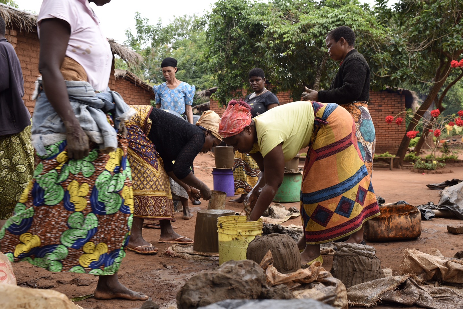 Åkte sedan med Dorkas och Laston till Chilingulo, där vi först åkte ned och hälsade på bychefen. Stark kvinna med många visioner för sin by. Tog oss sedan upp till den brunn som Wallenberg öppnade och pratade lite med dem som var där. Gick sedan till stället där Rose bor. Där rådde full aktivitet med uppläsning och tillverkning av energispisar. De upplever just nu en ökad aktivitet och med vattnet i närheten går det att öka takten. Ända svårigheten är med leran. De ville visa alla steg och många jobbade på ordentligt. Nästa vecka ska man bränna dem och jag hoppas kunna vara med även då en stund.