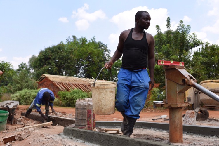 Vi fortsatte sedan till Makoloma där rekonstruktion av en plattform pågick. Nu görs alla rehabiliterade brunnars plattformar om så kvalitén blir bra. Roligt att se även denna del. Tittade förbi även äldre pump (från 2000) som ADRA överväger att rehabilitera i nästa fas av projektet. Innan lunch passade vi också på att besöka bychefen i Chilingulo, samt Rose som gör så många energispisar tillsammans med en grupp kvinnor. På väg tillbaka till Mulanje passerade vi även gänget som håller på att asfaltera. Utrustning från Atlas Copco/Dynapac.