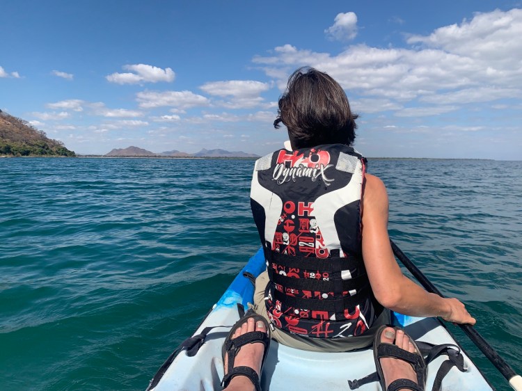 Dagen idag har varit väldigt bra. Frustrationen från igår är borta – skönt. Började med att efter frukost gå en vandring bort till stjärnstranden med guide som berättade en del och som vi ställde mycket frågor om fisket till. Paddlade kajak tillbaka och eftersom vi ville det tog vi en extratur efter att vi kommit tillbaka. Tidig lunch och sedan iväg för snorkling på ett bra ställe. Vi hade samma guide (Black) som också köpte lite fisk av en kanot på vägen dit. Häftigt att simma som i ett akvarium, speciellt när Black slängde ut lite bröd till fiskarna runt båten. På vägen tillbaka slängde han ut fisk till bl.a. fiskörnarna Obama och Michelle som kom och tog dem med fart. Häftigt att se. När vi kom tillbaka fick vi skynda oss för ytterligare en segling i solnedgång, denna gång med seglen uppe (tyvärr dog vinden…). Dessutom blev det lite titt på stjärnor och planeter i deras teleskop samt mat nere på stranden. En helt enkelt underbar dag. I morgon åker vi mot Dedza.