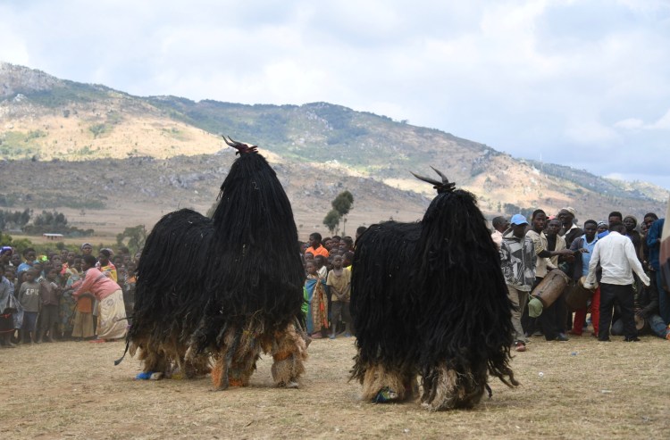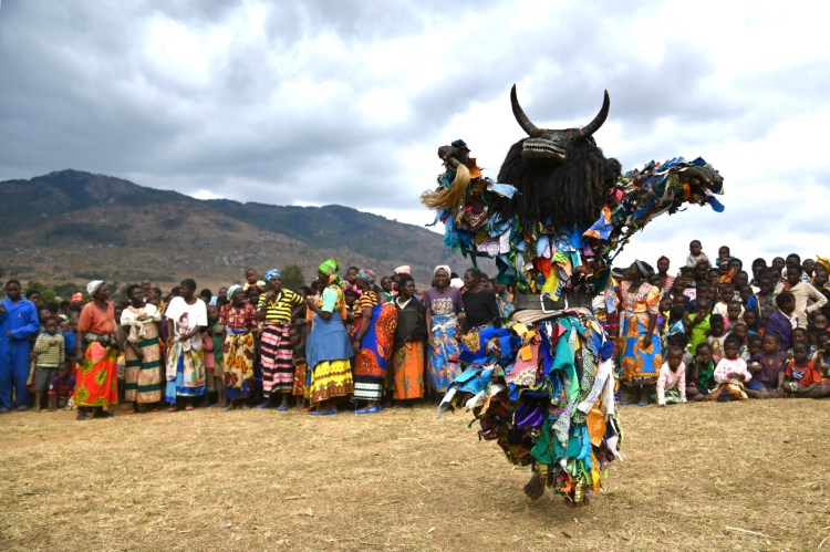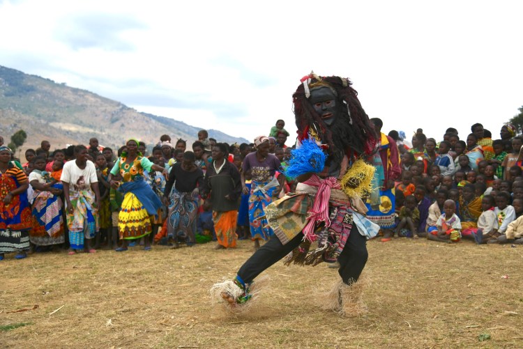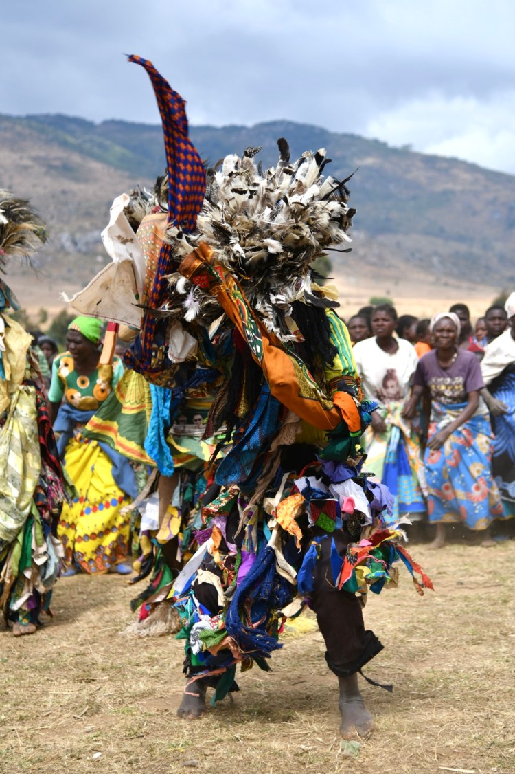 Sedan åkte vi till guidens hemby, Nguiere, som skulle dansa för första gången med turistpublik. Blev en häftig och lång föreställning med masker, specialdräkter och mycket dans och trummor. En del masker hade vi sätt när vi var vid Kungoni Art Center. Roligt.