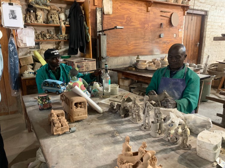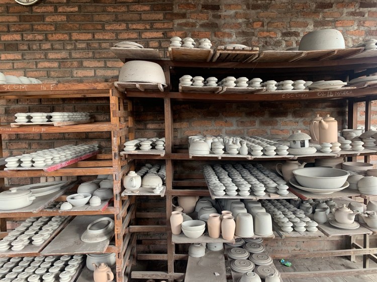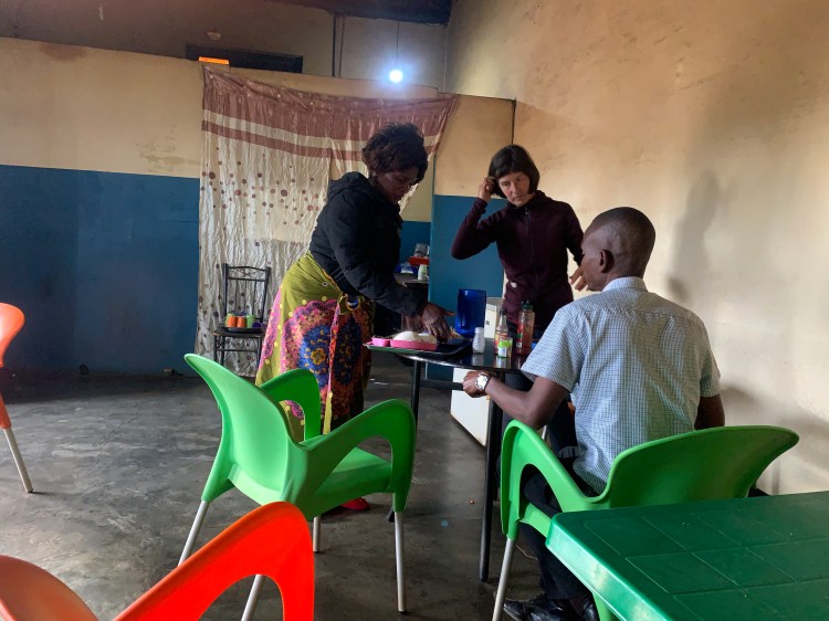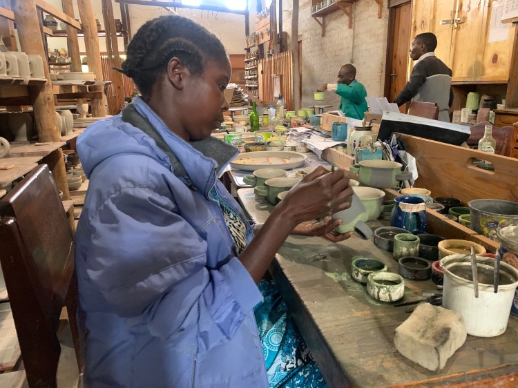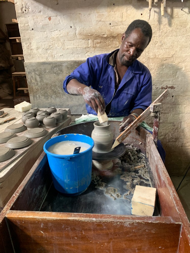 Tillbaka till krukmakeriet 1.5 – 2 timmar senare än planterat, men vi gick ändå en visning i fabriken och köpte även några skålar. Tog sedan sen lunch på ett ställe i Dedza där vår chaufför hade övernattat. Ett väldigt enkelt ställe, men god mat.