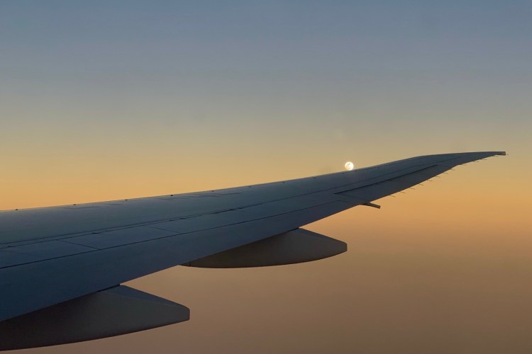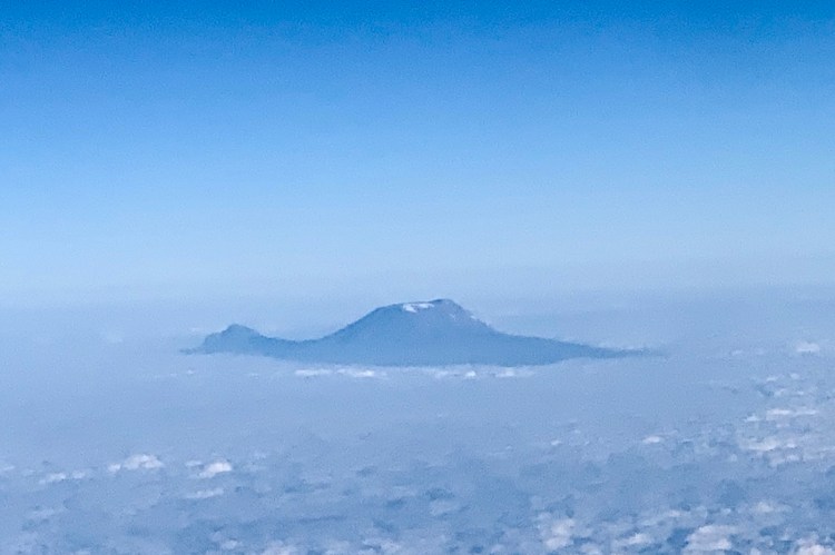Det som var extra roligt var att vi såg Kilimanjaro från luften. Solen var på fel sida med tanke på hur vi satt, men det blev en fullmåne i alla fall även om vingen mest var i vägen.