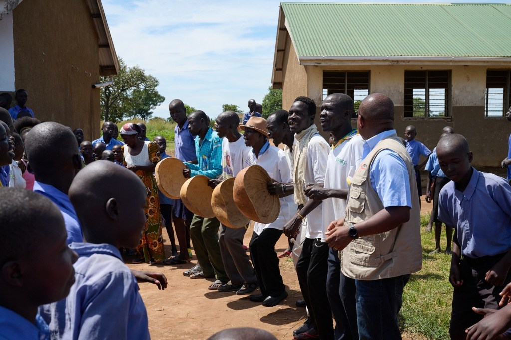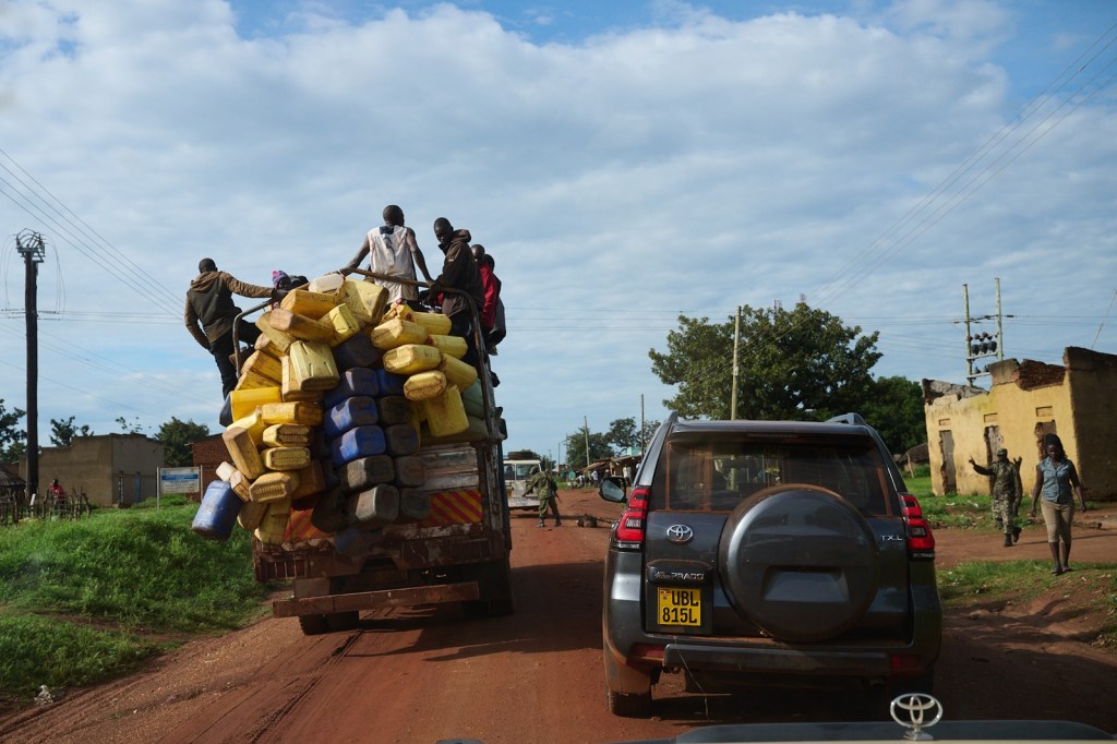 På väg ut i fält igen. Många lastbilar är väldigt högt packade.Besökte en skola som ännu inte fått hjälp med WASH-insatserEn av lärarna visar de enda latrinerna som finns (det fanns ytterligare en byggnad med samma storlek). Totalt 8 dass för alla elever, lärare och ca 500 byinvånare som bodde i närheten…. Stanken var fruktansvärd och en del hål var helt överfyllda med bajs. Rent ut sagt – äckligt.Några skolelever var nyfikna på oss och att vi kommit på besök.Besökte även ett par handpumpar på väg till skolanPå skolan möttes vi av både musik och dansgruppDansade med eleverna upp till skolan i en paradBesökte solpanelerna och där pumpen satts (ca 55 m ned i ett 125m djupt borrat hål)De närliggande byarna hade också fått sina två tappkranar de kunde använda för att hämta vatten. Tror detta är ett vinnande konceptRiktiga urinoarer, toaletter (utan stol) samt en handikappanpassad toalett. Allt med spolning, vilket är första gången jag ser i denna typ av miljö. Allt går till en behållare som sedan kan tömmas vid behov.Efter att bandet hade klippts, fick barnen komma fram. Lyckliga moment och alla njuter nu med att ha bra vatten med kran i skolanMer dans och sång med traditionella danser/sångerMer dans, vilket fortsatte efter vi åkt, antagligen rätt många timmar.Vägen hade svämmat över lite på några ställenBra med chaufförer som är duktiga och kan området.Debriefing om våra upplevelser så här långt.Camilla berättar sin historia. Det gick rakt in i hjärtat på många. Vilka förskräckliga år norra Uganda genomlevt under många år.