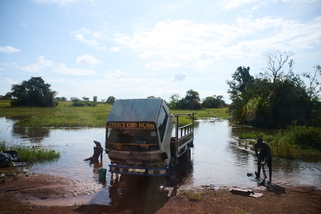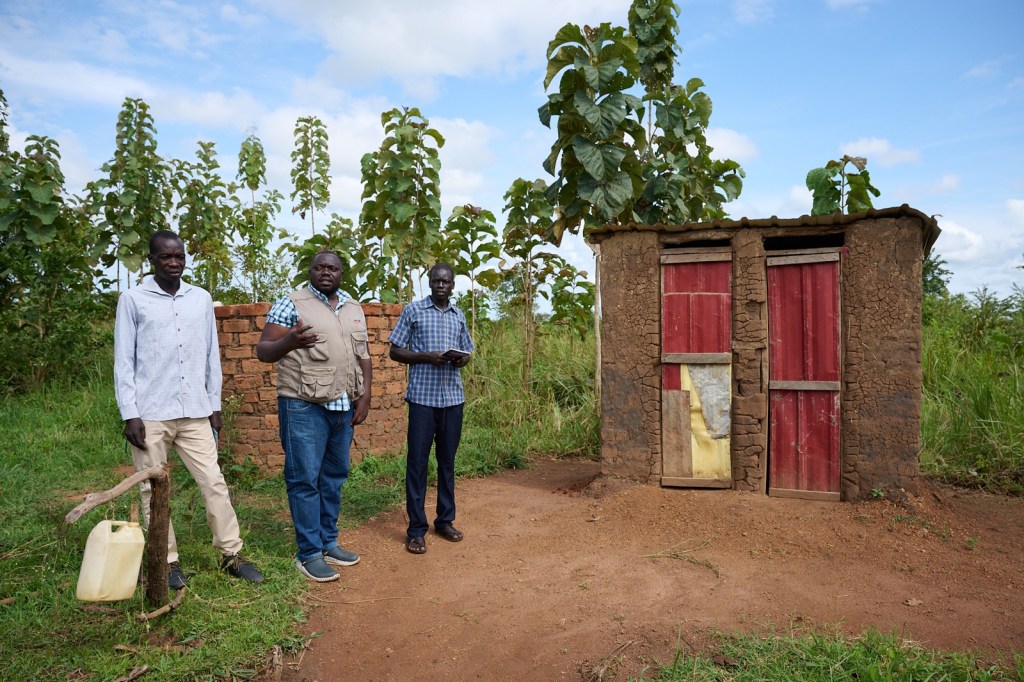 En lastbil på vägen ut, som hade fått något problem och inte kunde köra vidareDet är rätt vanligt att man tvättar både cyklar, motorcyklar, bilar och lastbilar i närliggande vattendrag.Många är nyfikna när så många bilar (5st) kommer åkande på stigar/småvägar genom byarnaDen byn vi besökte bestod av 84 hushåll, och byn är rätt utspridd. Mycket hade hänt i byn sedan de fick vattenpunkten renoverad. Kravet var också att de flesta skulle ha egna latriner och möjlighet att tvätta händerna. Stor förändring hade också skett i och med att mycket färre nu fick diarre.Vi besökte ett par av latrinerna och även handtvätts-anläggningen.Varje hushåll har ett antal hyddor, beroende på hur många man var i familjen. Något som underlättat även problem man har haft tidigare med våld i familjerna. Man bor väldigt enkelt. Många har också byggd energibesparande spisar, några få med ”skorsten”, övriga med röken kommande från ett hål i spisen (där skorstenen normalt ska placeras)Bychefen berättade om mycket positivt som hänt i byn, sedan Amref kommit och hjälpt dem. Bland annat fick vi titta på vilka som var med i VSLA (Village Savings and Loan Association), hur mycket de betalat in och hur mycket de lånat. Även boken på hur mycket de samlat in till underhållet av vattenpunkten.Även den kvinna som jobbar med hälsofrågor i ett antal byar i området var där och berättadeBarnen var till viss del intresserade, men ännu hellre höll de på att leka med varandra.Det blev bara ett väldigt kort möte med skolan – under paraply. Här funderar Amref på hur de ska göra med resterande del av det planerade programmetDet var nog rätt bra att vi inte åkte längre ut i bushen med ännu större problem att vänta.Även de större vägarna var hala och slippriga. Alla bilar tog det väldigt lugnt. Efter vår lunchpaus åkte vi upp till vattenmyndigheten och pratade med ansvarig samt med några från serviceorganisationen som ligger som ett mellanled mellan byarna och myndigheterna. En av serviceorganisationens alla tekniker. Vanligaste felen var dåliga rör och själva pumpen längst ner i hålet som gått sönder.Vi avbröt mötet lite hastigt på grund av ett rätt kraftig åskväder. Regnet sköljde ned rejält och man blev fort blöt även om det var kort väg mellan bil och ingången till gästhuset. På mitt rum var det en halv centimeter vatten i halva rummet genom en öppning högt upp ovanför fönstret, men de var rätt snabba på att torka upp det.