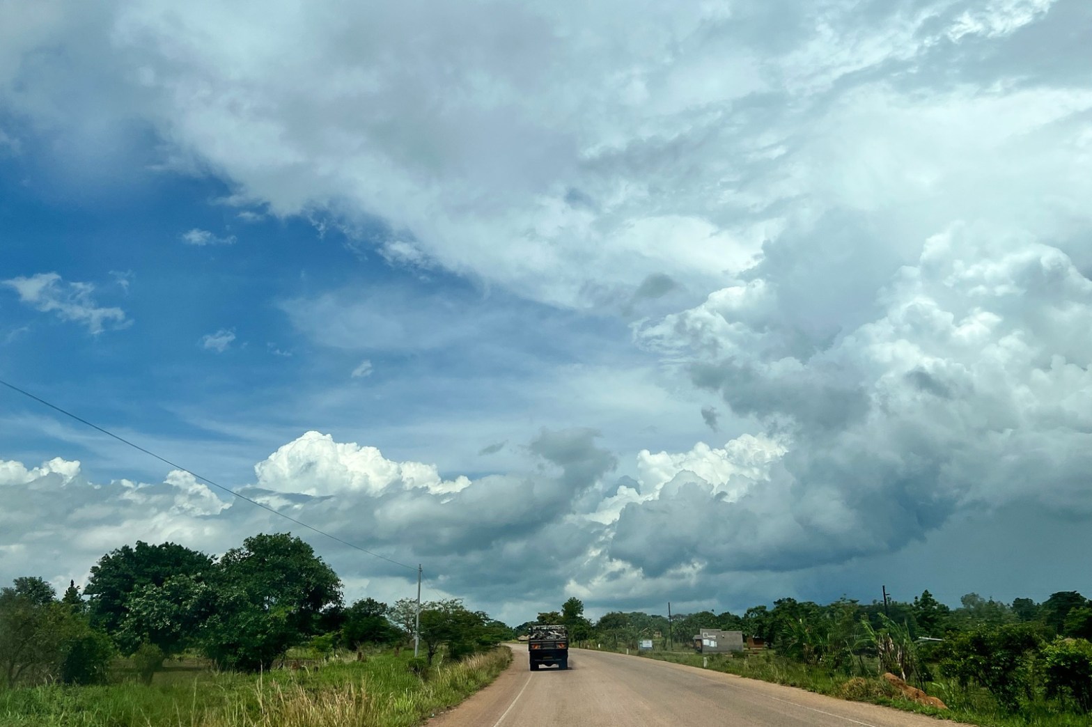 Hade torkat upp rätt mycket efter allt häftigt regnade i förrgår. Fick höra att det regnade kraftigt i Kampala på morgonen. Vi fick en del skurar och häftiga moln på väg mot Gulu, då också rösten började försvinna mer och mer. Får helt enkelt vara lite tystare idag…
