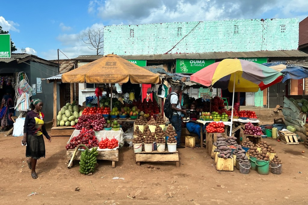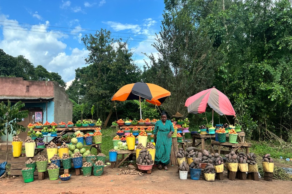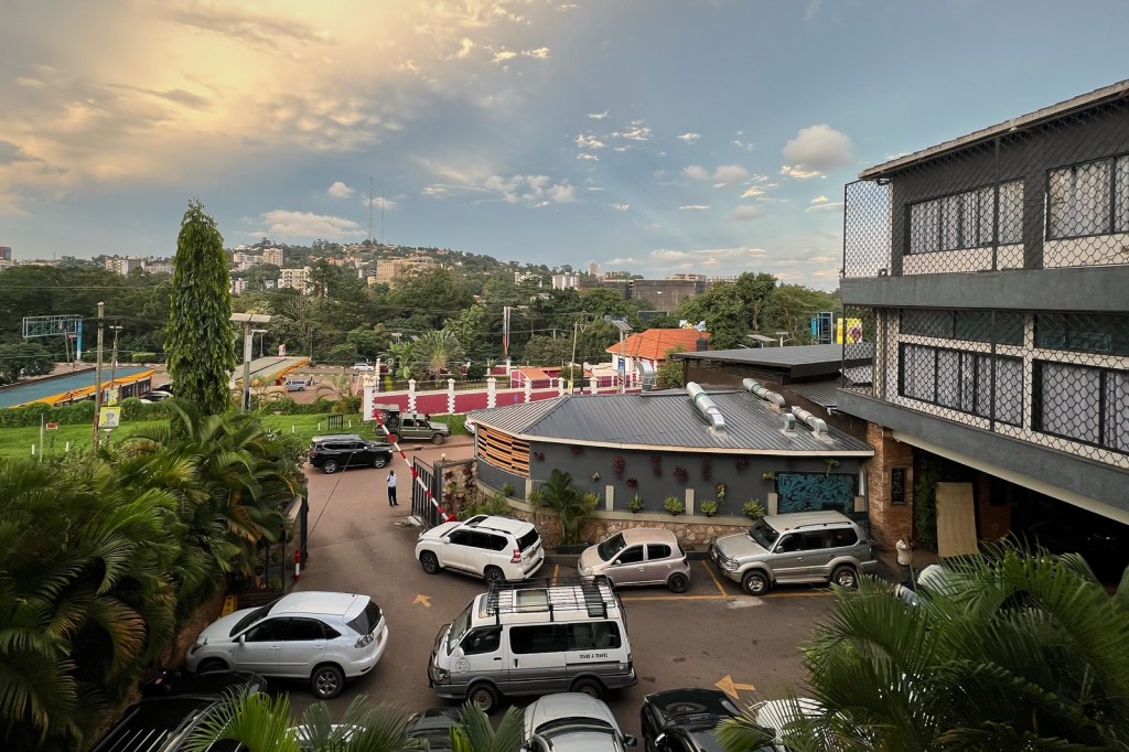Köpte lite samosas och banan samt dricka på ett standardställe innan vi fortsatte. Ca 5 mil norr om Kampala var det många olika fruktstånd i byarna/samhällena/städerna. Mycket trafik och rörigt, men kom fram till hotellet vid 18-tiden. Dvs att resan tog mellan 8 och 9 timmar.