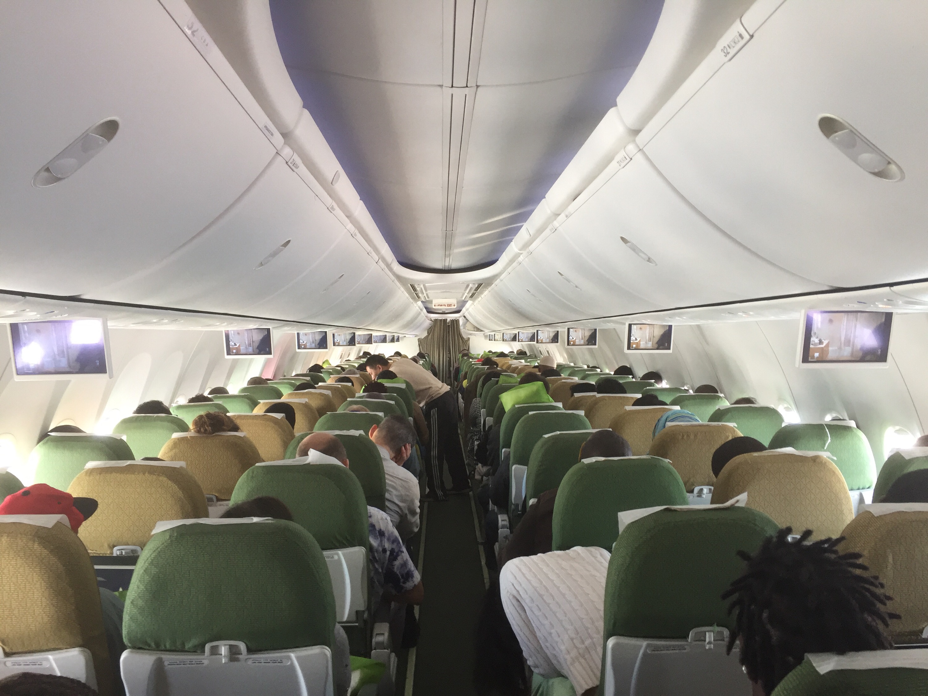 Planet till Addis blev en dreamliner vilket är ett väldigt skönt plan. Dock hade vi en mamma med barn två rader framför, men han var efter ett tag rätt så tyst. Värre var det med familjen bakom som hade två barn. Mamman satt vid gången och barnen i mitten samt fönstret. De kunde då också slå varandra varpå gallskrik uppstod. Hade nog själv satt mig i mitten istället, men alla tänker ju inte som jag. Förstod Hans kommentar att nästa gång blir det nog business i alla fall. Var dock relativt lugnt från Rom mot Addis, så några timmars sömn blev det i alla fall.